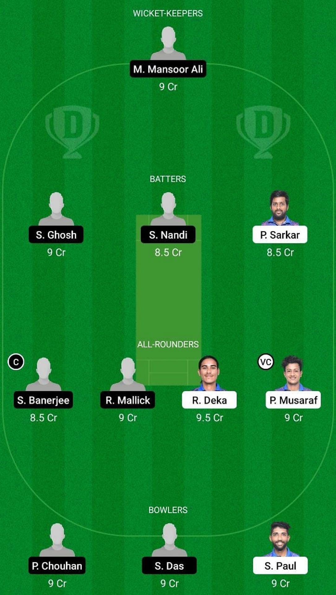 Fantasy Suggestion #1: M Mansoor Ali, P Sarkar, S Nandi, S Ghosh, S Banerjee, P Musaraf, R Mallick, R Deka, S Das, P Chouhan, S Paul.