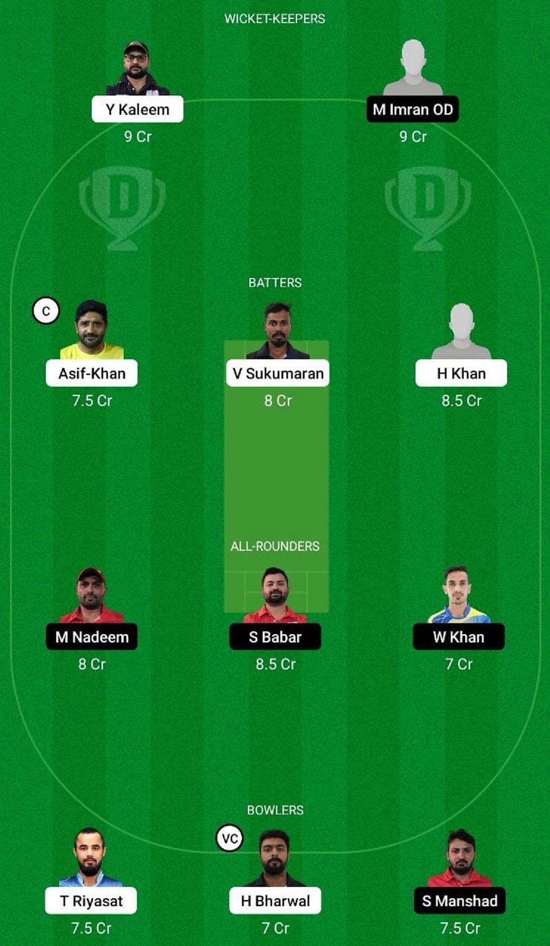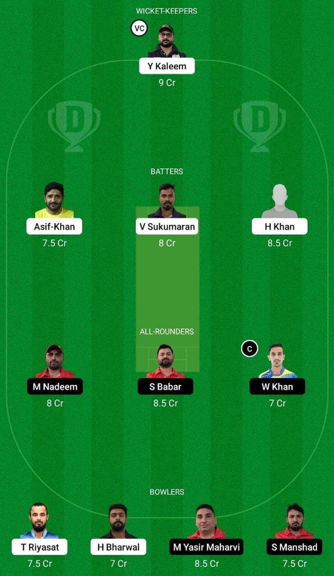 Yasir Kaleem (C & WK), Hazrat Luqman, Muhammad Taimoor, Sandeep Singh, Touqeer Riyasat, Asif Khan, Hameed Khan, Ahmed Shafiq, Vishnu Sukumaran, Danish Qureshi, Shahnawaz Khan.