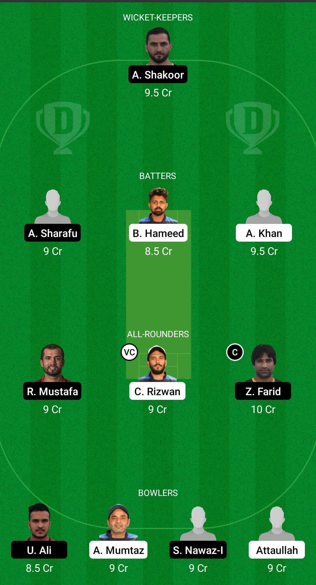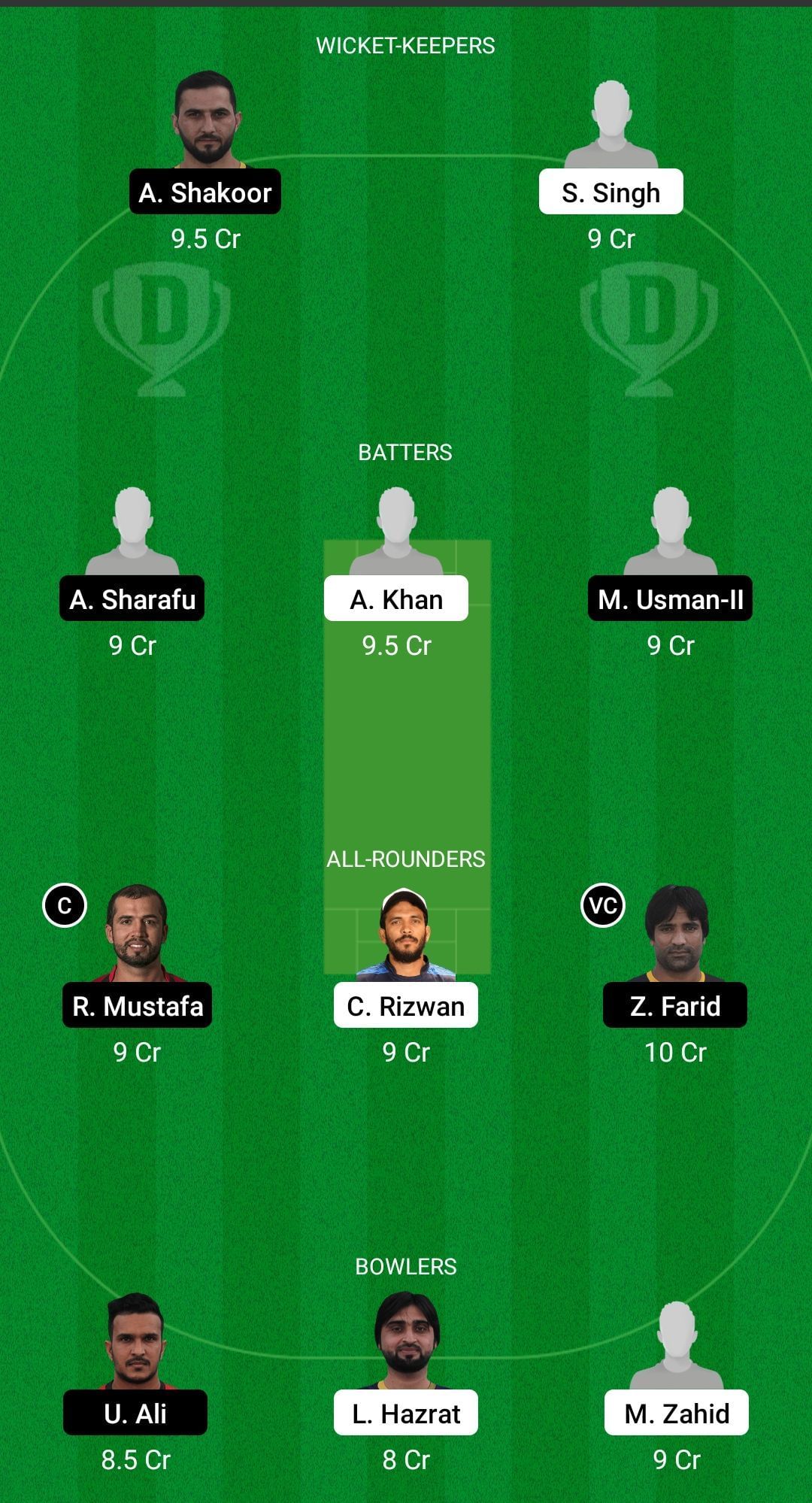 Fantasy Suggestion #1: Abdul Shakoor, Sandeep Singh, Alishan Sharafu, Asif Khan, Muhammad Usman, Rohan Mustafa, CP Rizwan, Zawar Farid, Umair Ali, Laqman Hazrat, Mohammad Zahid.