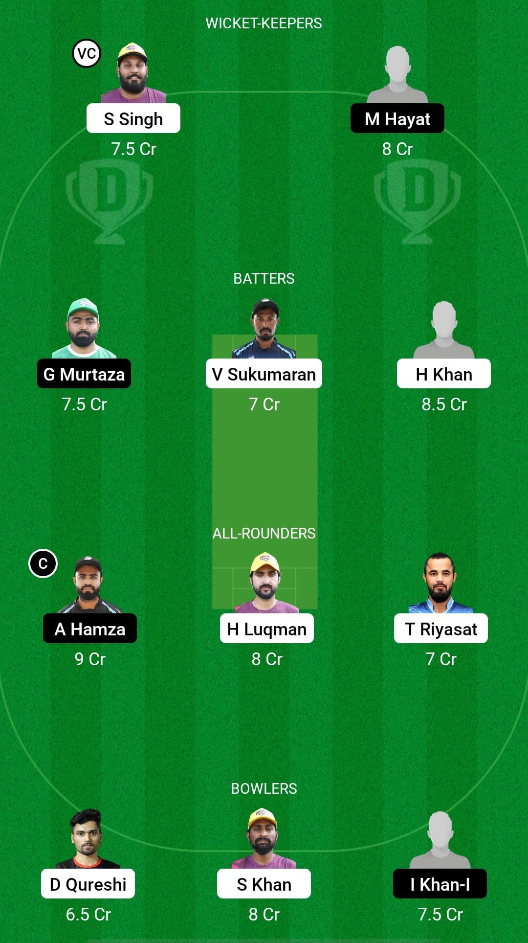 Batters: Ghulam Murtaza, Vishnu Sukumaran, Hameed Khan