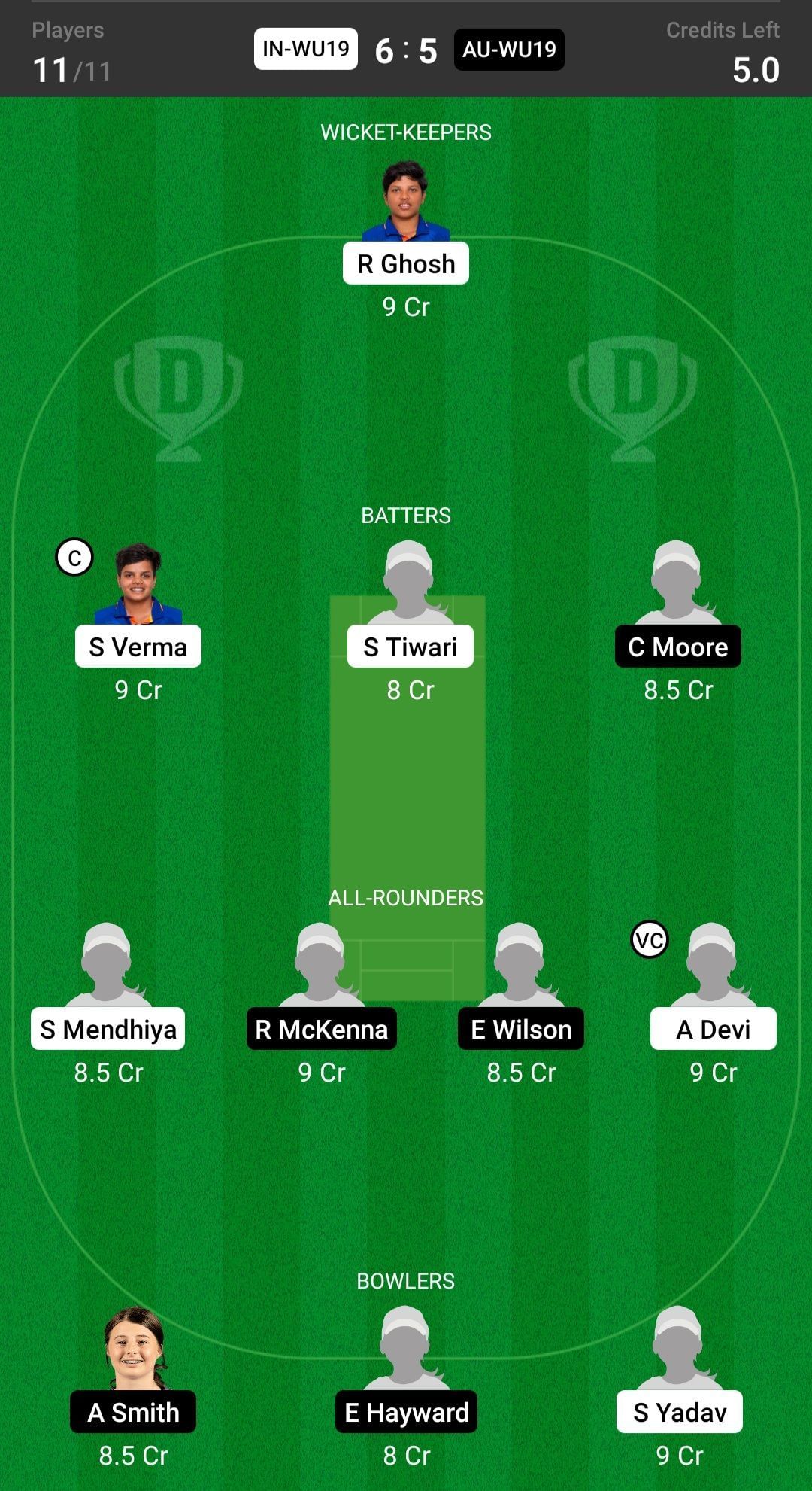 IN-W U19 vs AU-W U19 match captain and vice-captain choices