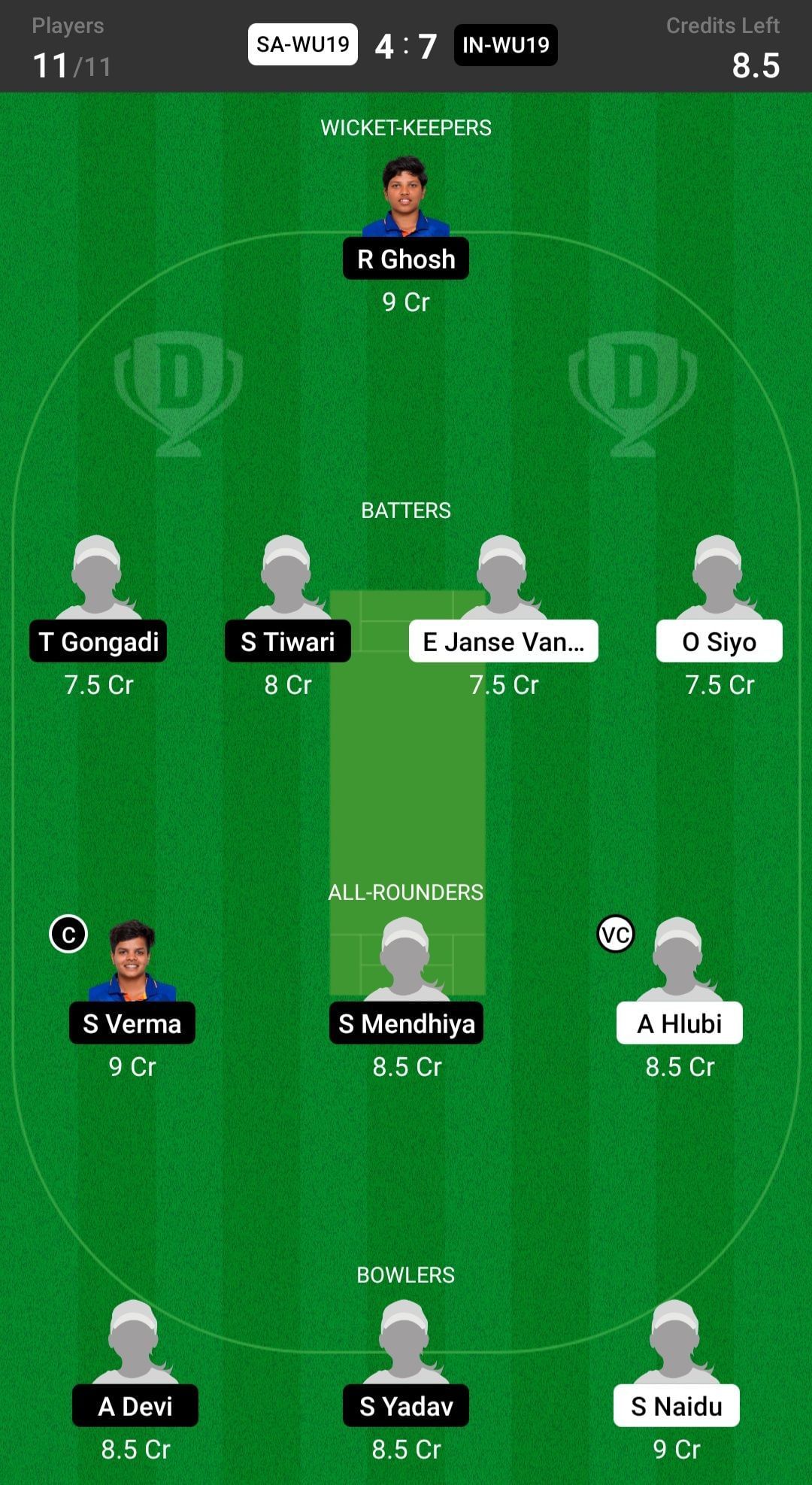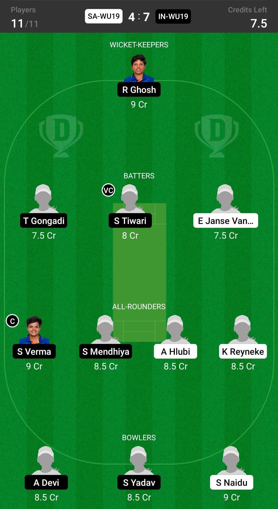 IN-W U19 vs SA-W U19 match captain and vice-captain choices