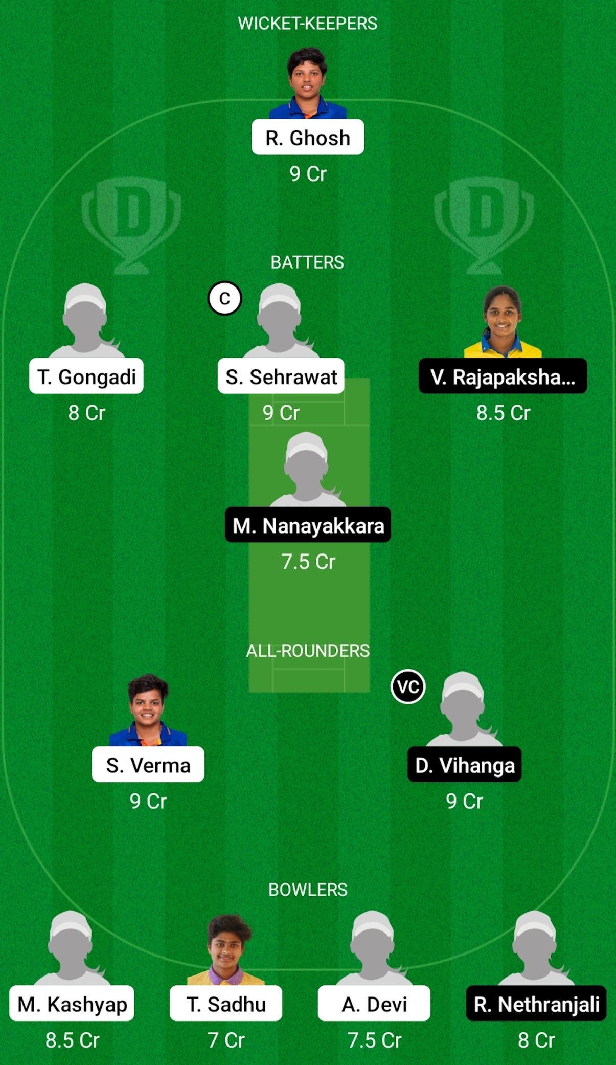 Batters: T Gongadi, Shweta Sherawat, Vishmi Rajapakhsa, M Nanayakkara