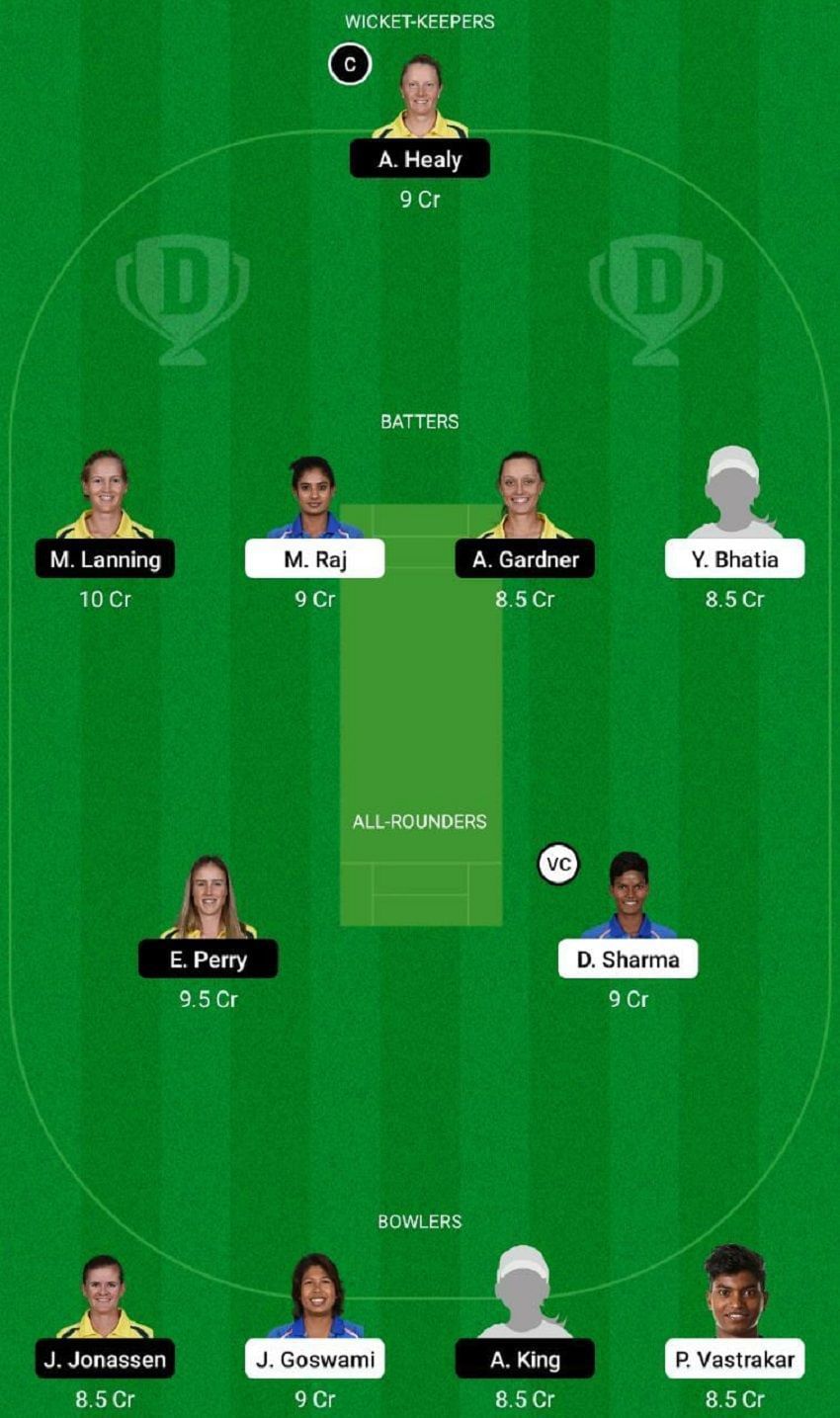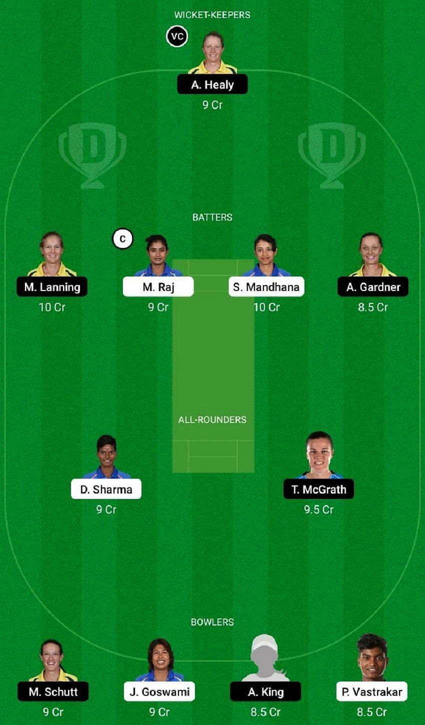 Fantasy Suggestion #1: Alyssa Healy, Meg Lanning, Mithali Raj, Smriti Mandhana, Ashleigh Gardner, Deepti Sharma, Tahlia McGrath, Megan Schutt, Jhulan Goswami, Alana King and Pooja Vastrakar.