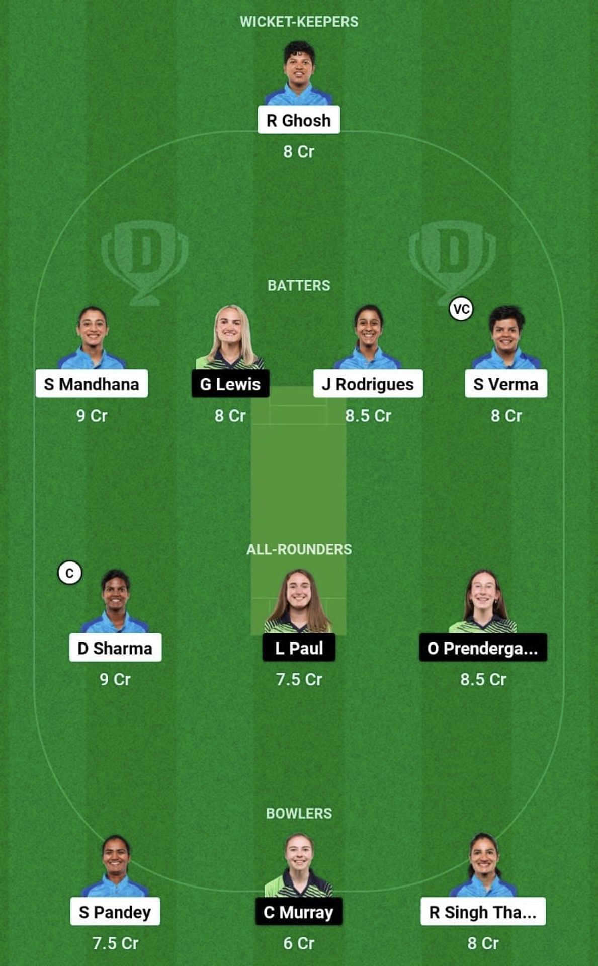 Gaby Lewis showed signs of form in the previous game, scoring 38 runs off just 34 balls. Lewis is a talented batter who has a strike rate in excess of 100 in T20Is. With the Irish opener even boasting a century in this format, she is a good addition to your IN-W vs IR-W Dream11 prediction team.