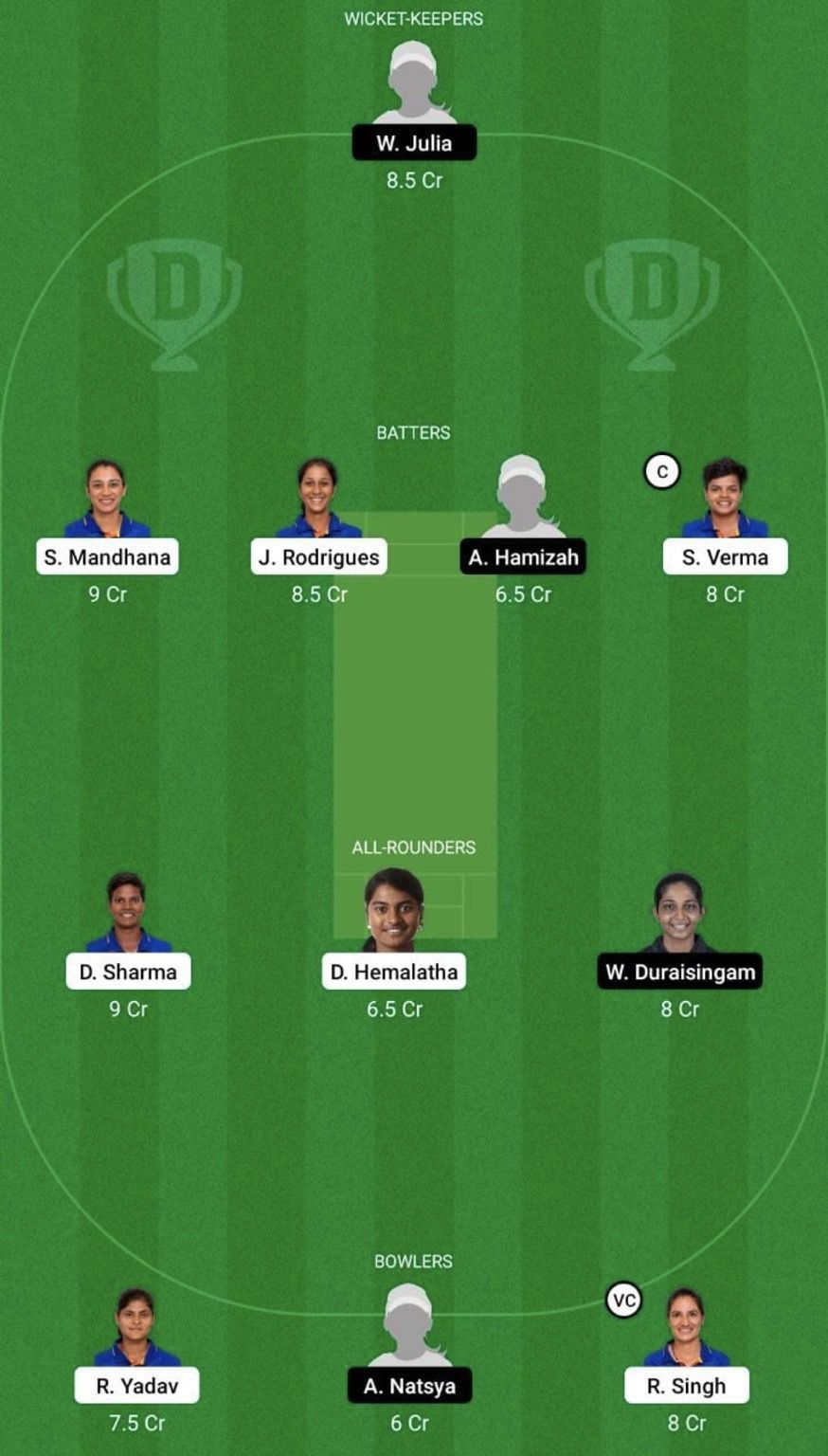 Malaysia struggled against spin in the previous game, losing six out of nine wickets to the trio of Sadia Iqbal, Omaima Sohail, and Tuba Hassan. Along the same lines, India's spinners have also been in decent form. Give Malaysia's worries with the bat, Deepti Sharma and Sneh Rana should be great additions to your IN-W vs ML-W Dream11 prediction team.