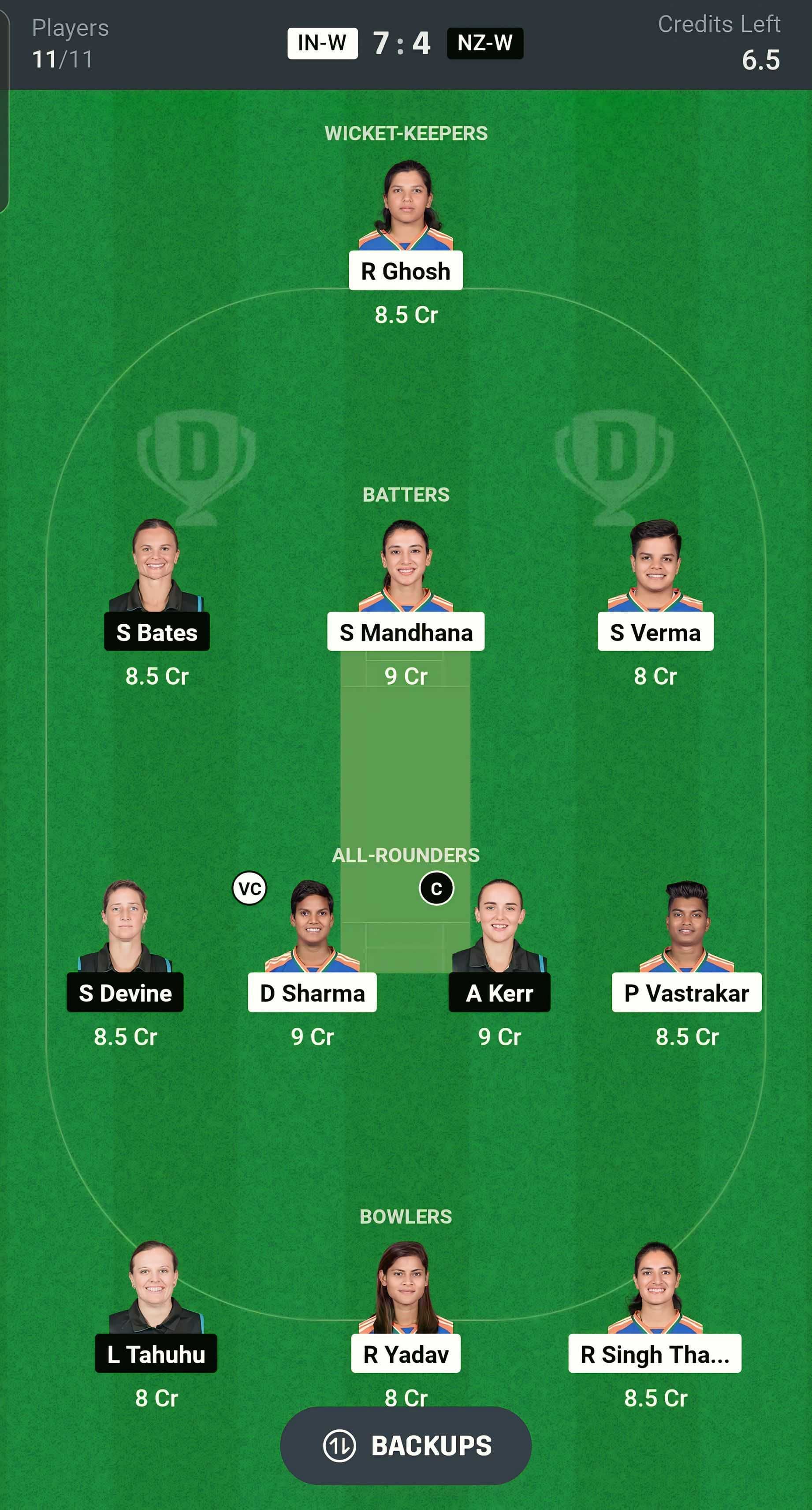 All-rounders: S Devine, D Sharma, A Kerr, P Vastrakar