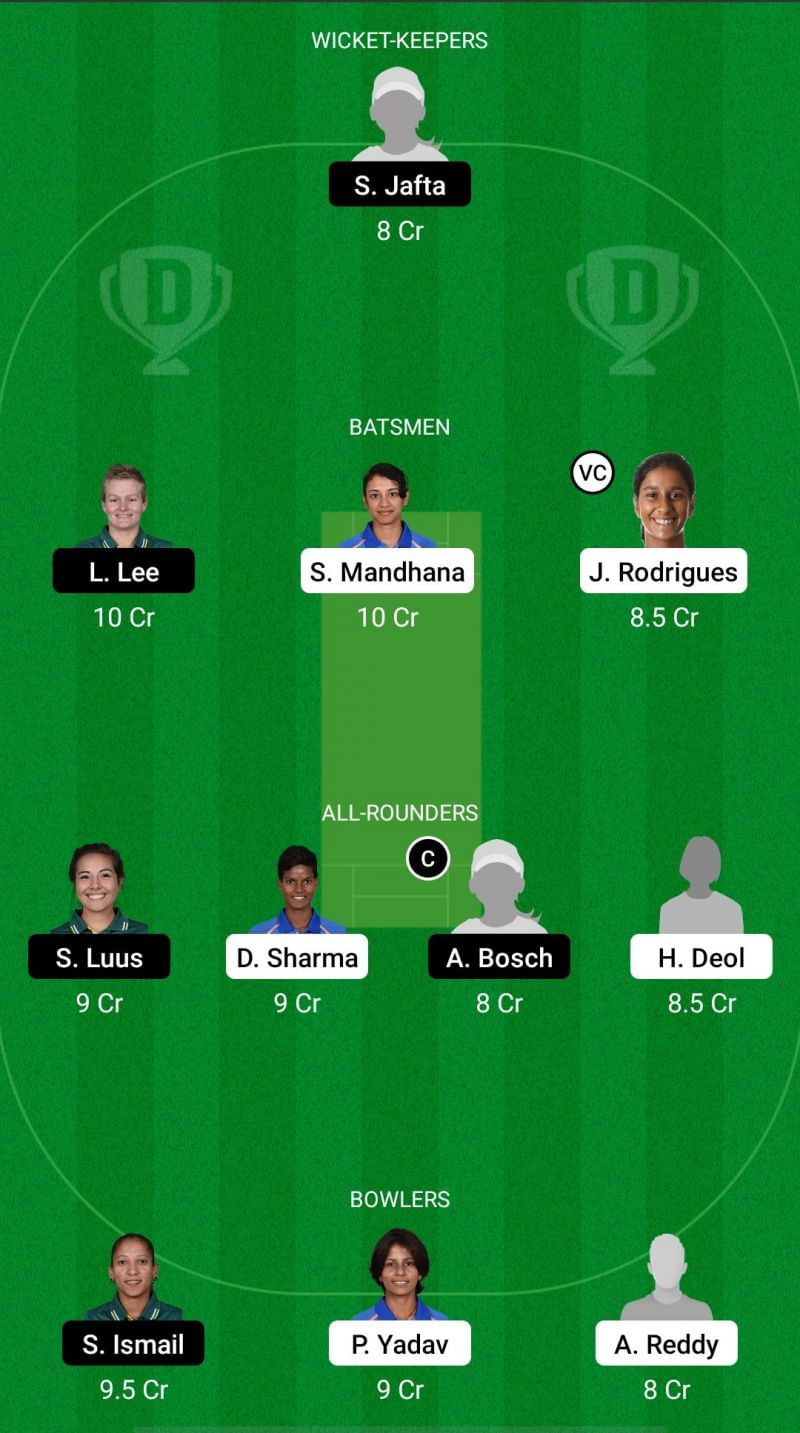 Fantasy Suggestion #1: Sinalo Jafta, Jemimah Rodrigues, Smriti Mandhana, Lizelle Lee, Harleen Deol, Deepti Sharma, Anne Bosch, Sune Luus, Radha Yadav, Arundhati Reddy, Shabnim Ismail.