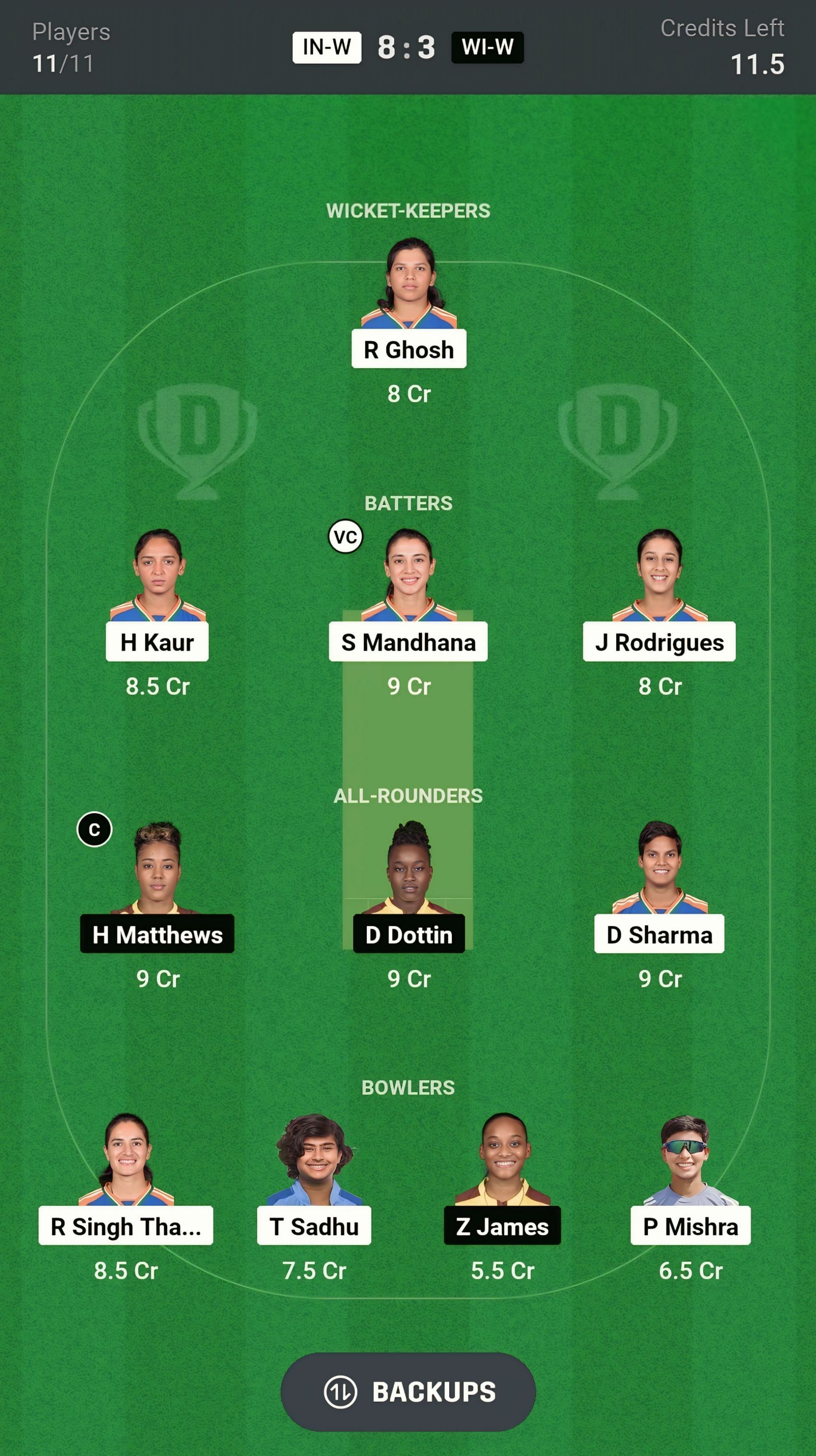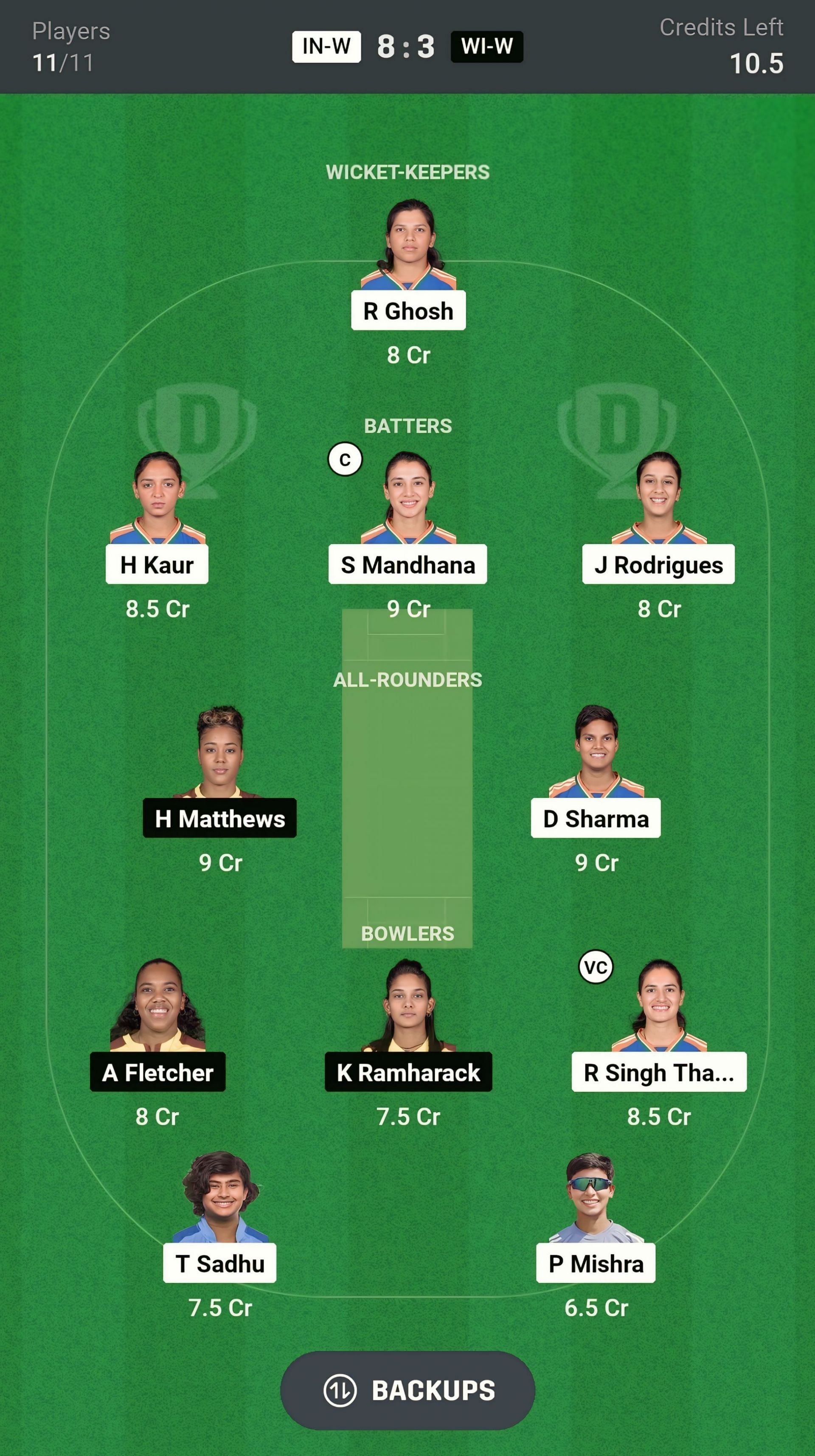 Hayley Matthews and Deepti Sharma are the best all-rounder picks for the Dream11 team. Both will play a crucial role for their teams in today's match.