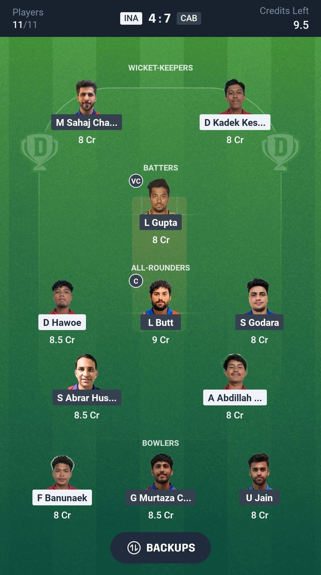 S Abrar is another crucial pick from the Cambodia squad. He is in top-notch form and can once again perform well at this venue. He will complete his quota of overs. He has taken 6 wickets and smashed 30 runs in the last four matches.
