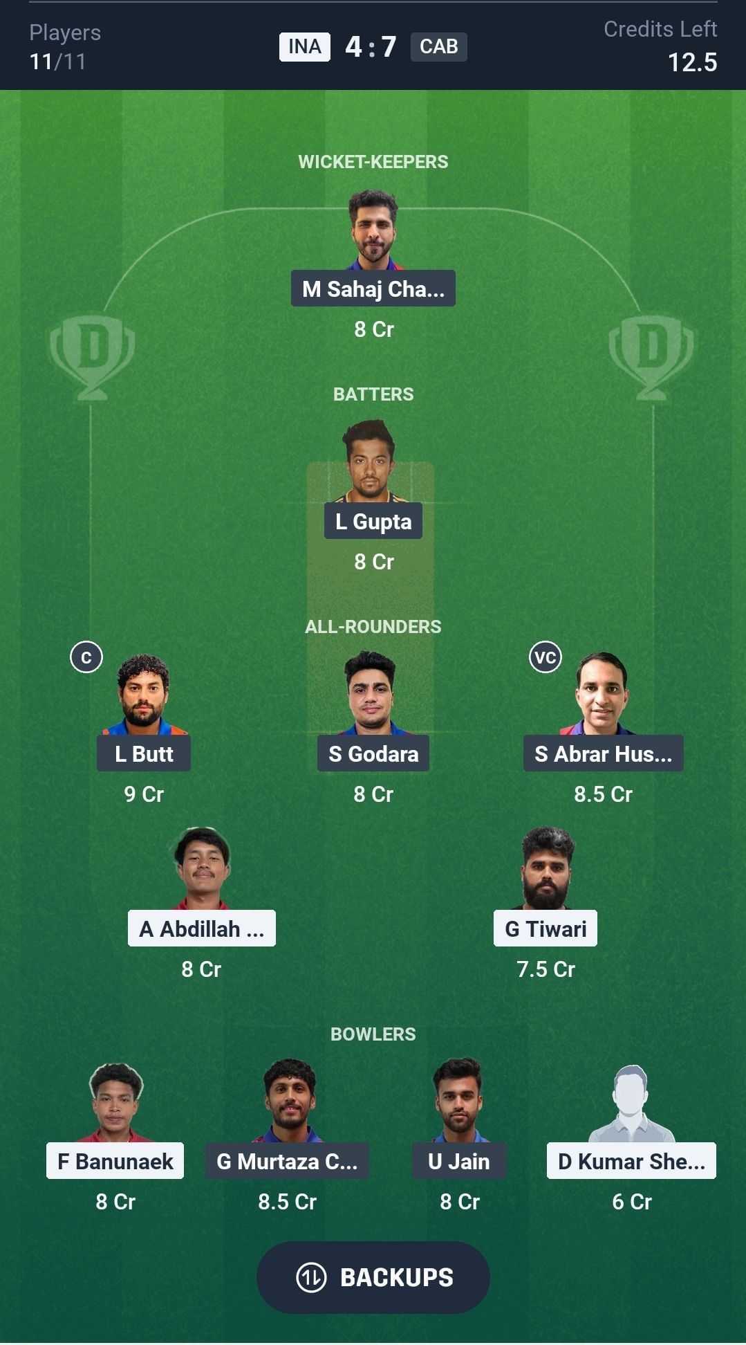 S Abrar and L Butt are the best all-rounders for the Dream11 team. Both players are crucial for today's match. L Butt will bat in the top order and complete his quota of overs in today's match. He has taken 3 wickets and smashed 88 runs in the last four matches. S Godara is another good all-rounder for today's match.