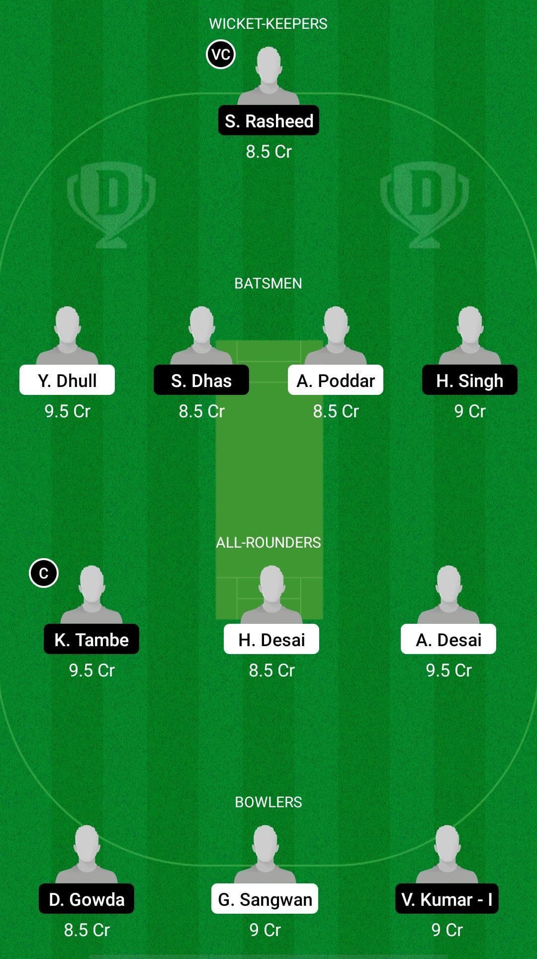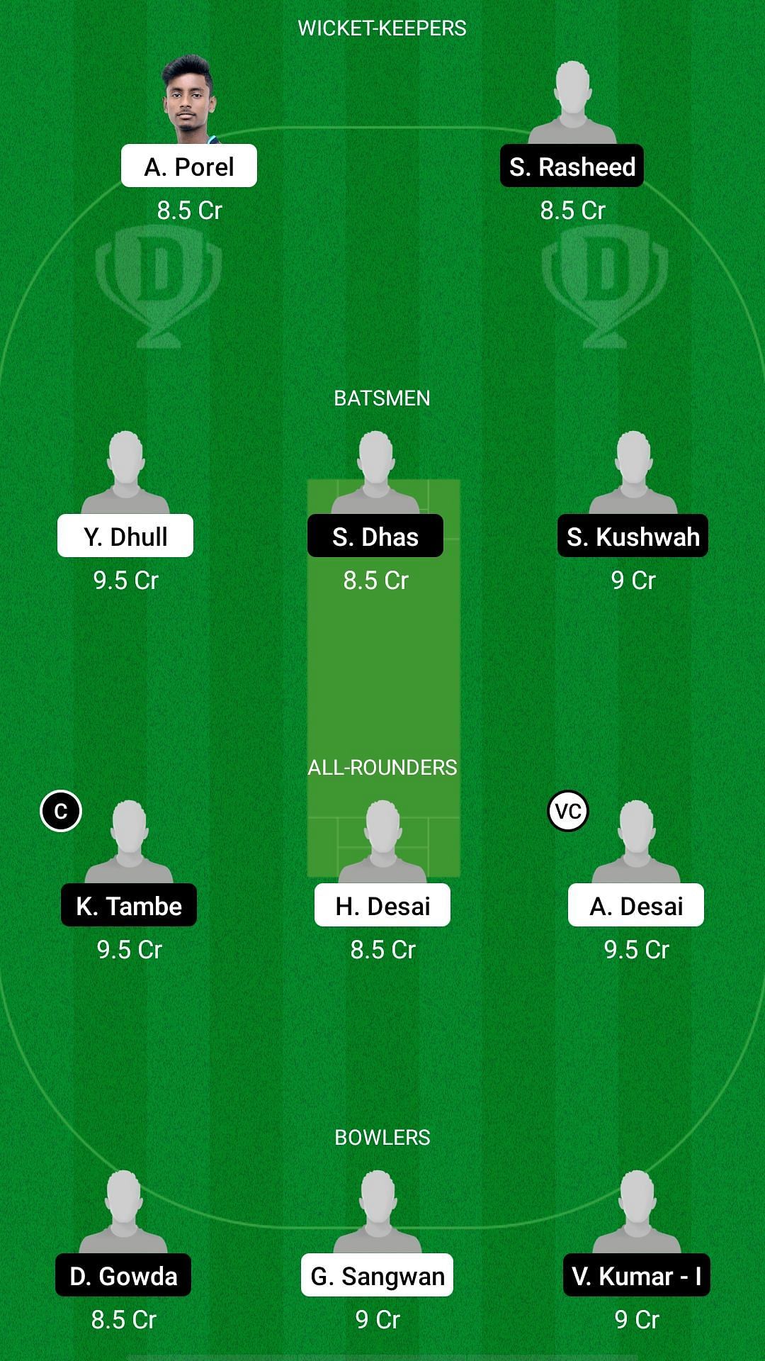 Captain: Kaushal Tambe. Vice-captain: SK Rasheed.