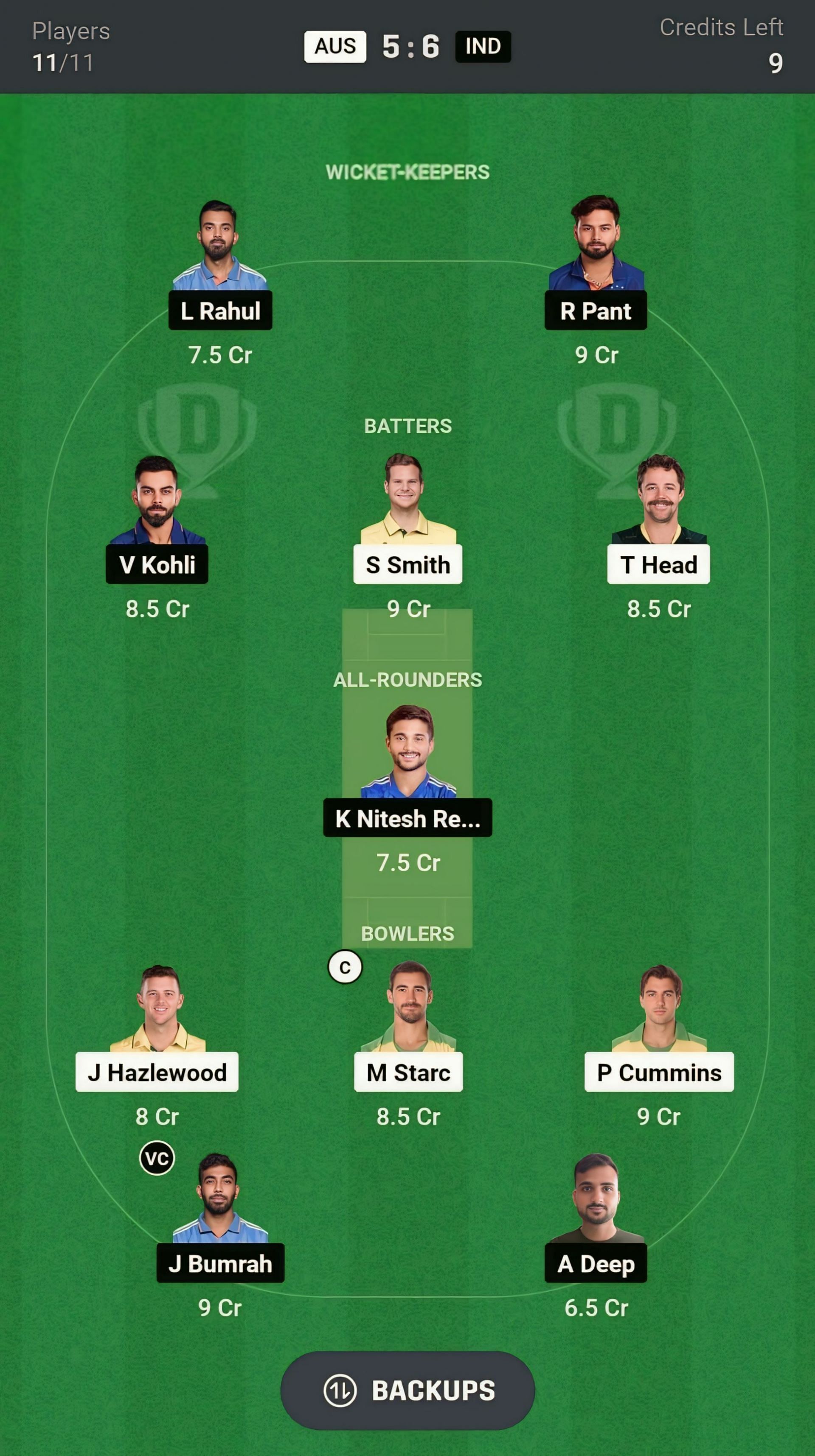Bowlers: M Starc, J Bumrah, P Cummins, A Deep, J Hazlewood