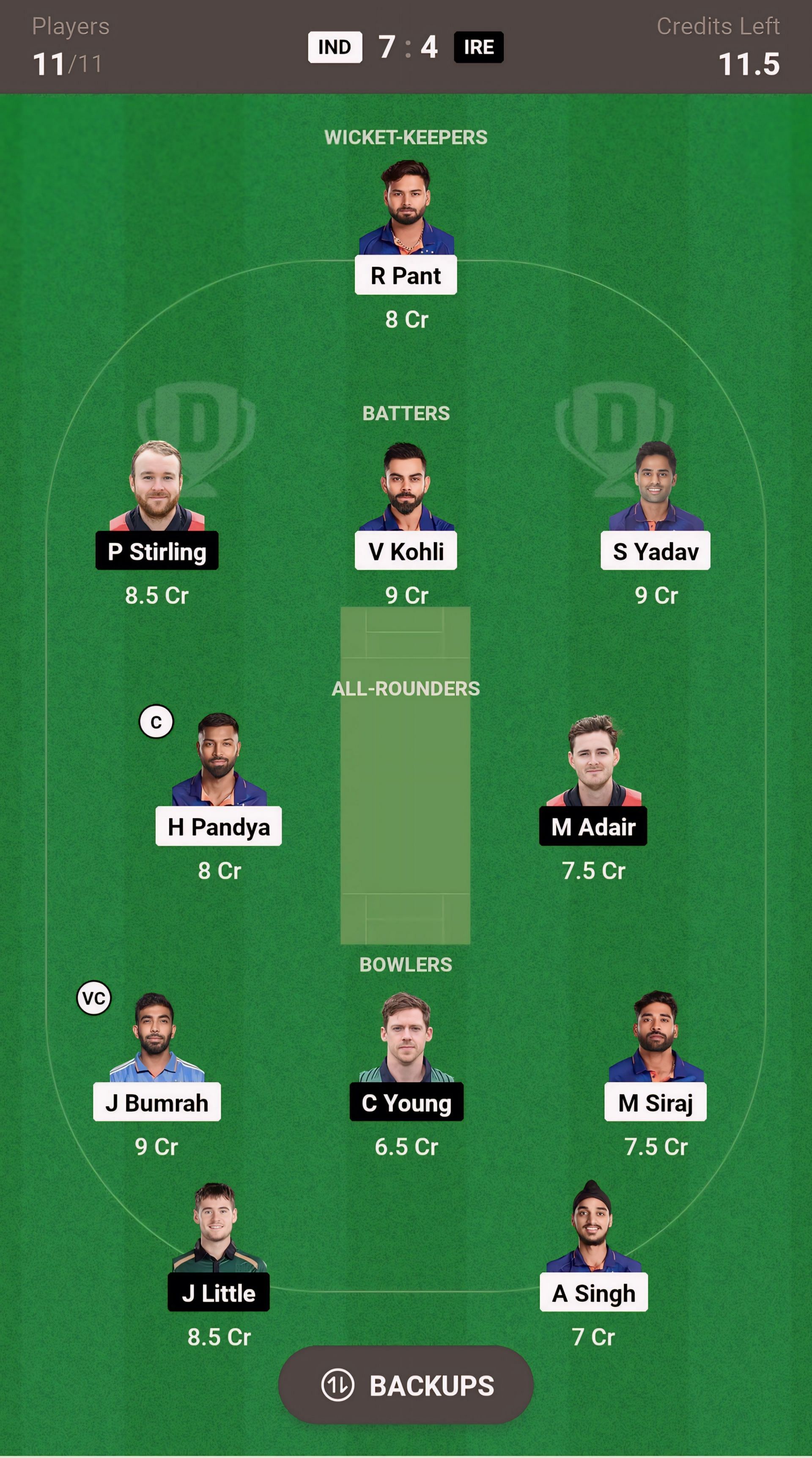 Batters: P Stirling, V Kohli, S Yadav