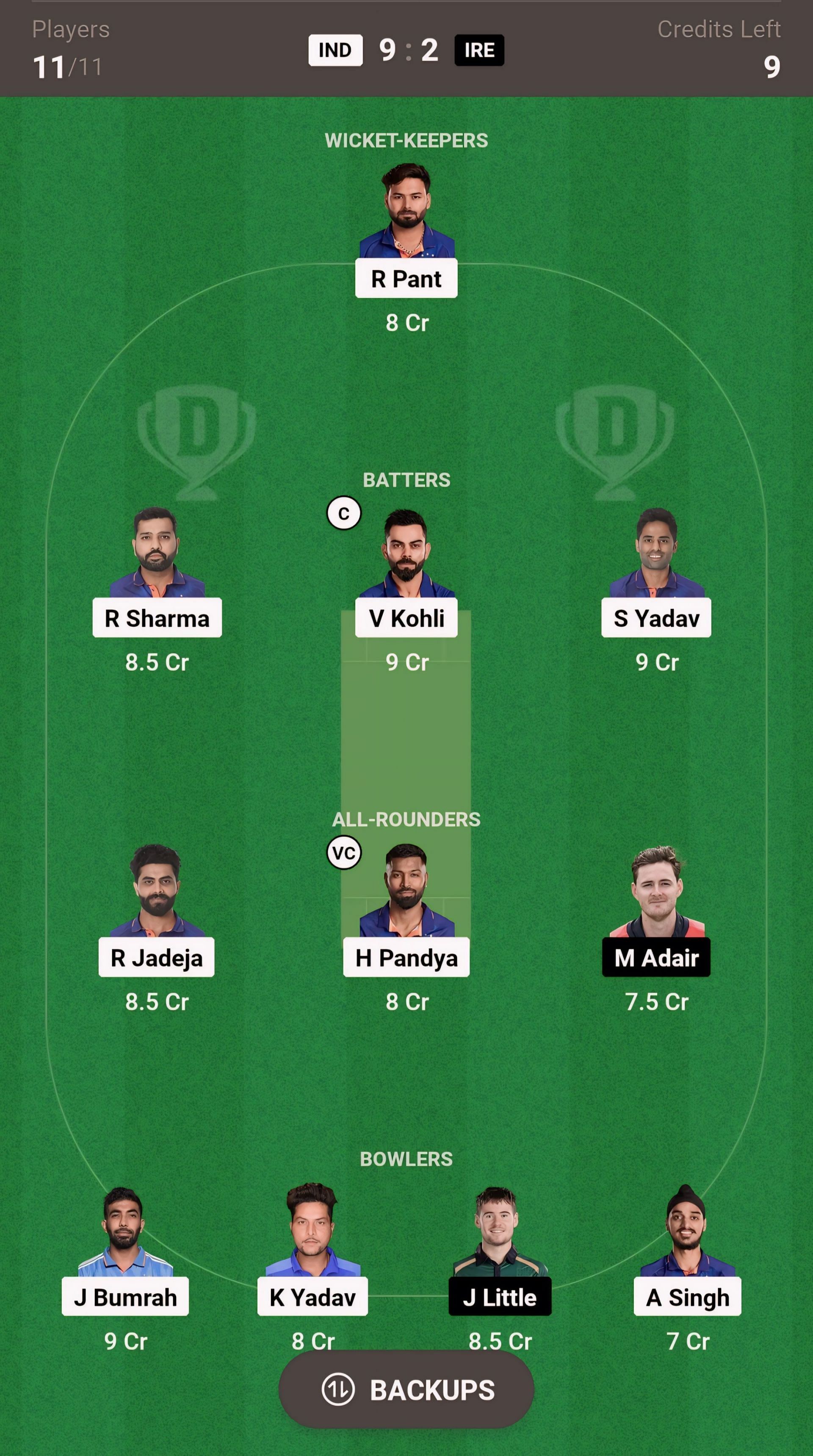 All-rounders: H Pandya, M Adair, R Jadeja
