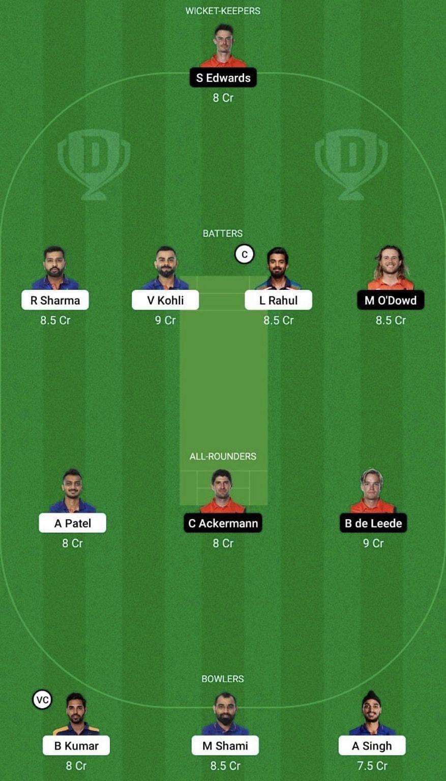 IND vs NED match captain and vice-captain choices