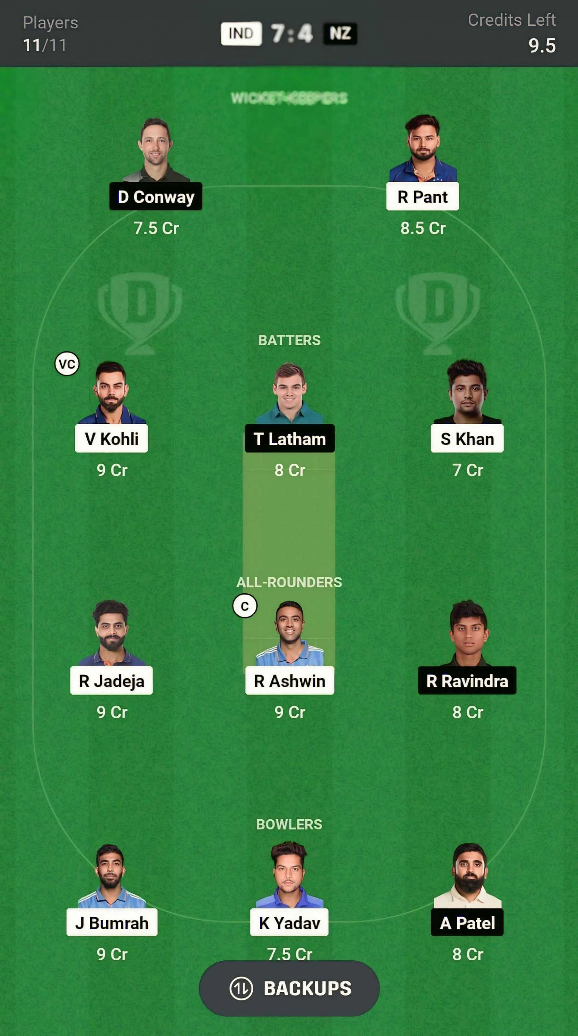 India vs New Zealand Dream11 Prediction Today, Grand League