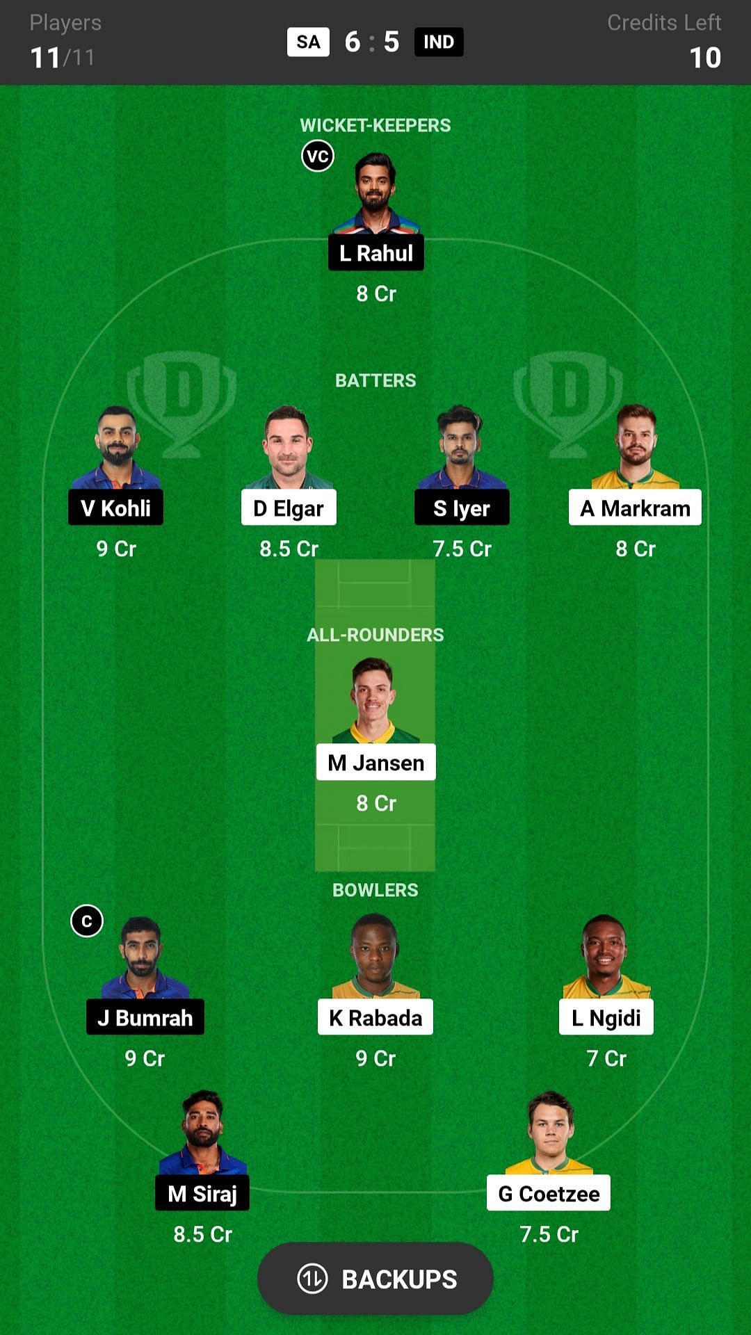 Bowlers: M Siraj, K Rabada, G Coetzee, J Bumrah
