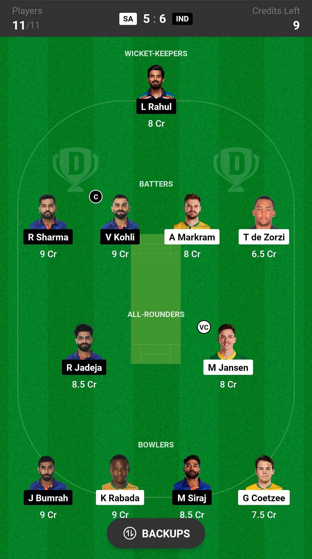 Batters: R Sharma, A Markram, V Kohli, T De Zorzi