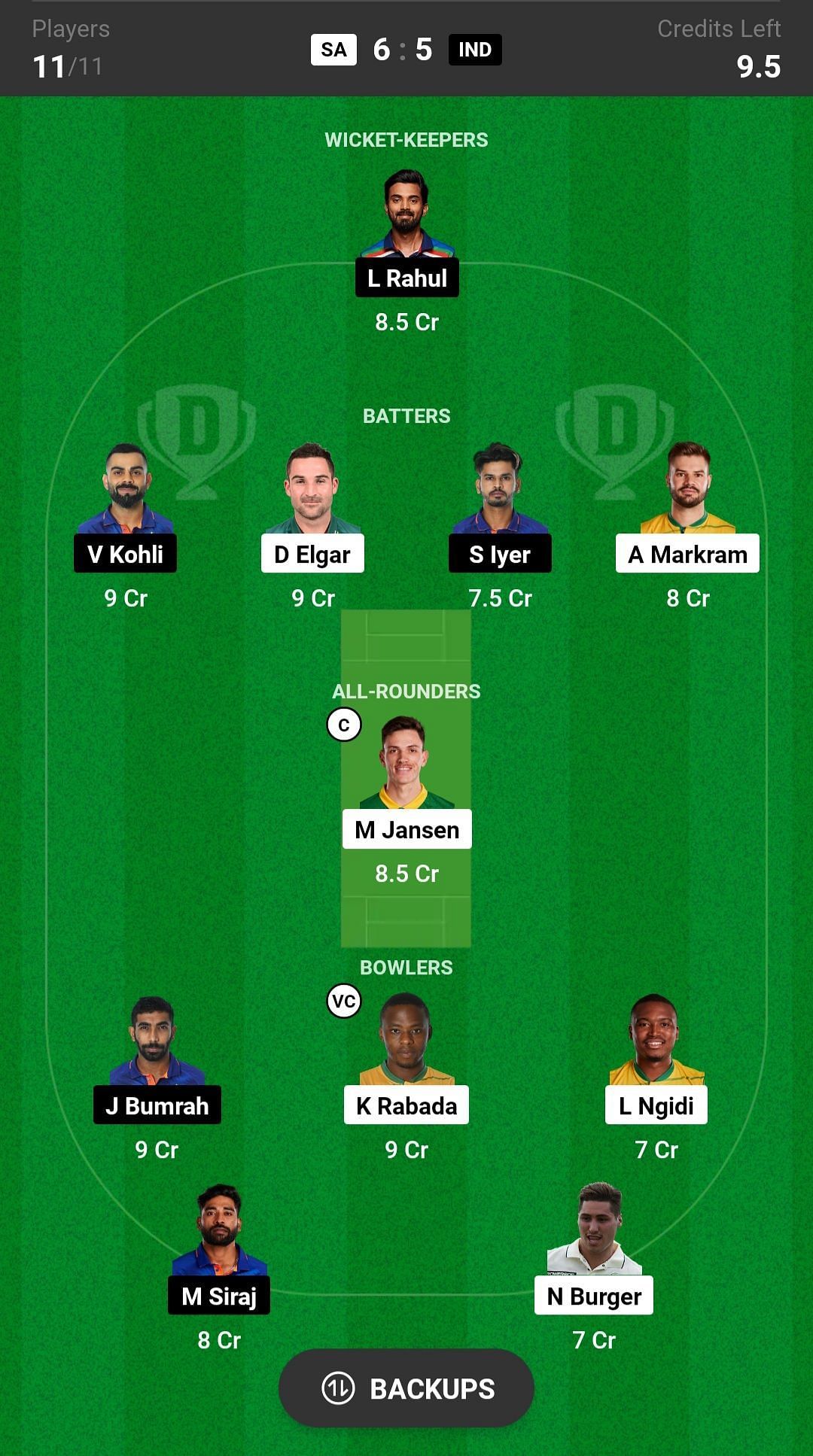 Since the pitch is expected to help batters, you can make V Kohli the captain of your team. He can be one of the most important picks of today's match. While the whole team was struggling in the first test, he looked comfortable against the South African pacers, smashing 114 runs in the last match.