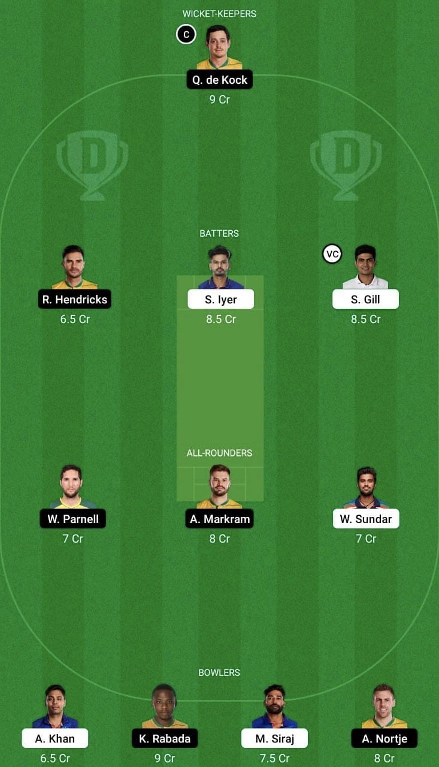 Batters: Shreyas Iyer, Shubman Gill (vc), Reeza Hendricks