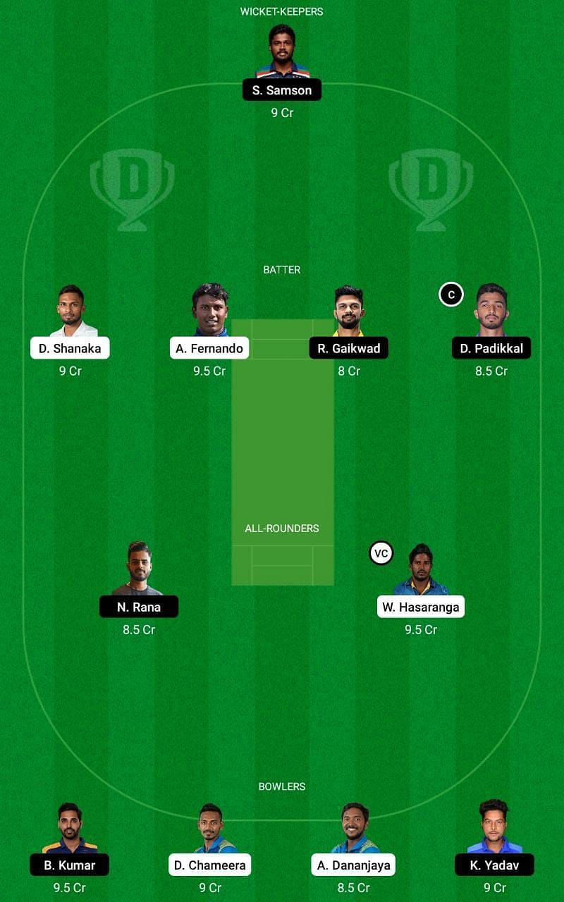 Fantasy Suggestion #1: Sanju Samson, Dasun Shanaka, Avishka Fernando, Devdutt Padikkal, Ruturaj Gaikwad, Wanindu Hasaranga, Nitish Rana, Bhuvneshwar Kumar, Kuldeep Yadav, Akila Dananjaya and Dushmantha Chameera