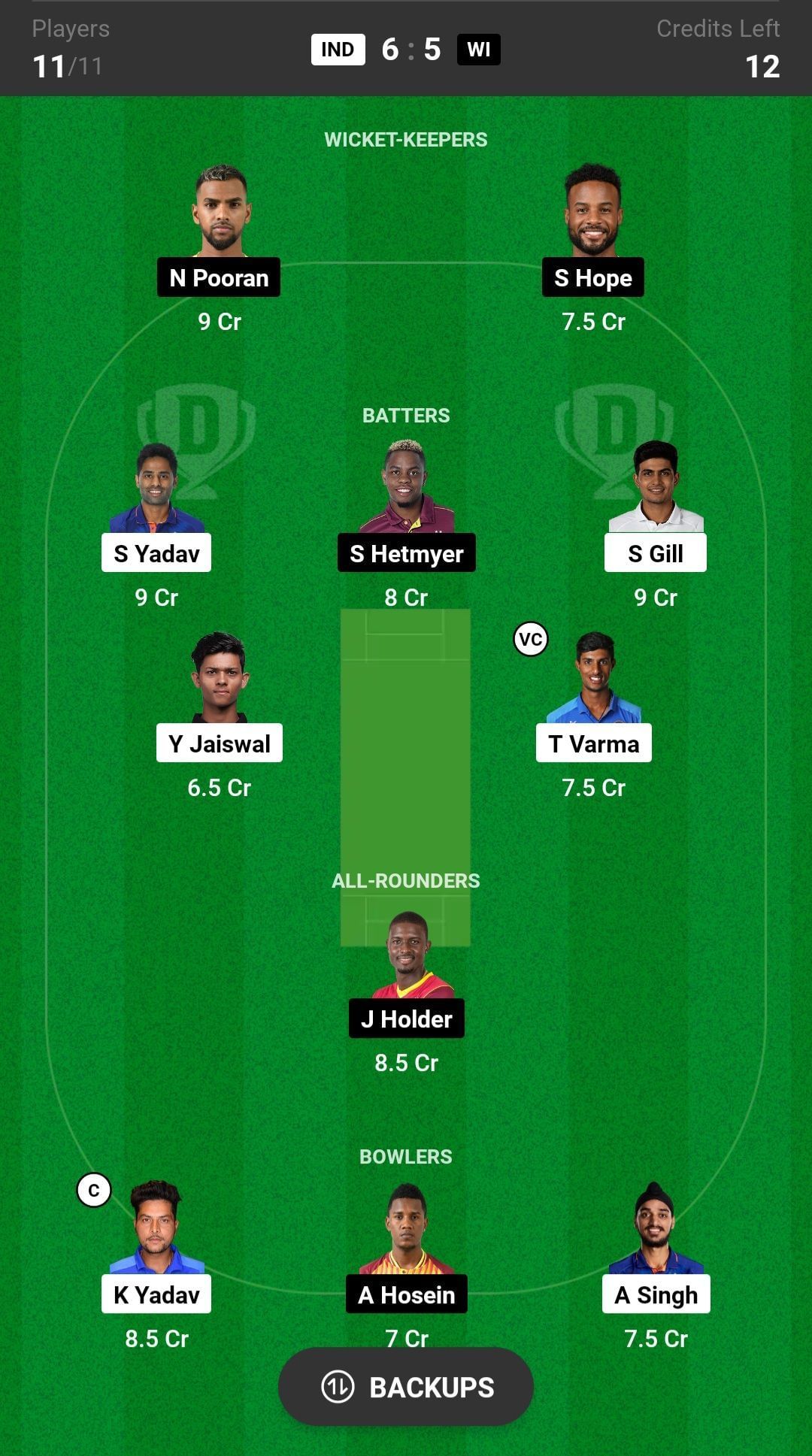 You can make Kuldeep Yadav your captain or vice-captain since the West Indies are finding it difficult to read his spin bowling. You can make him the captain of the grand league teams. He has taken 6 wickets in the last three matches.