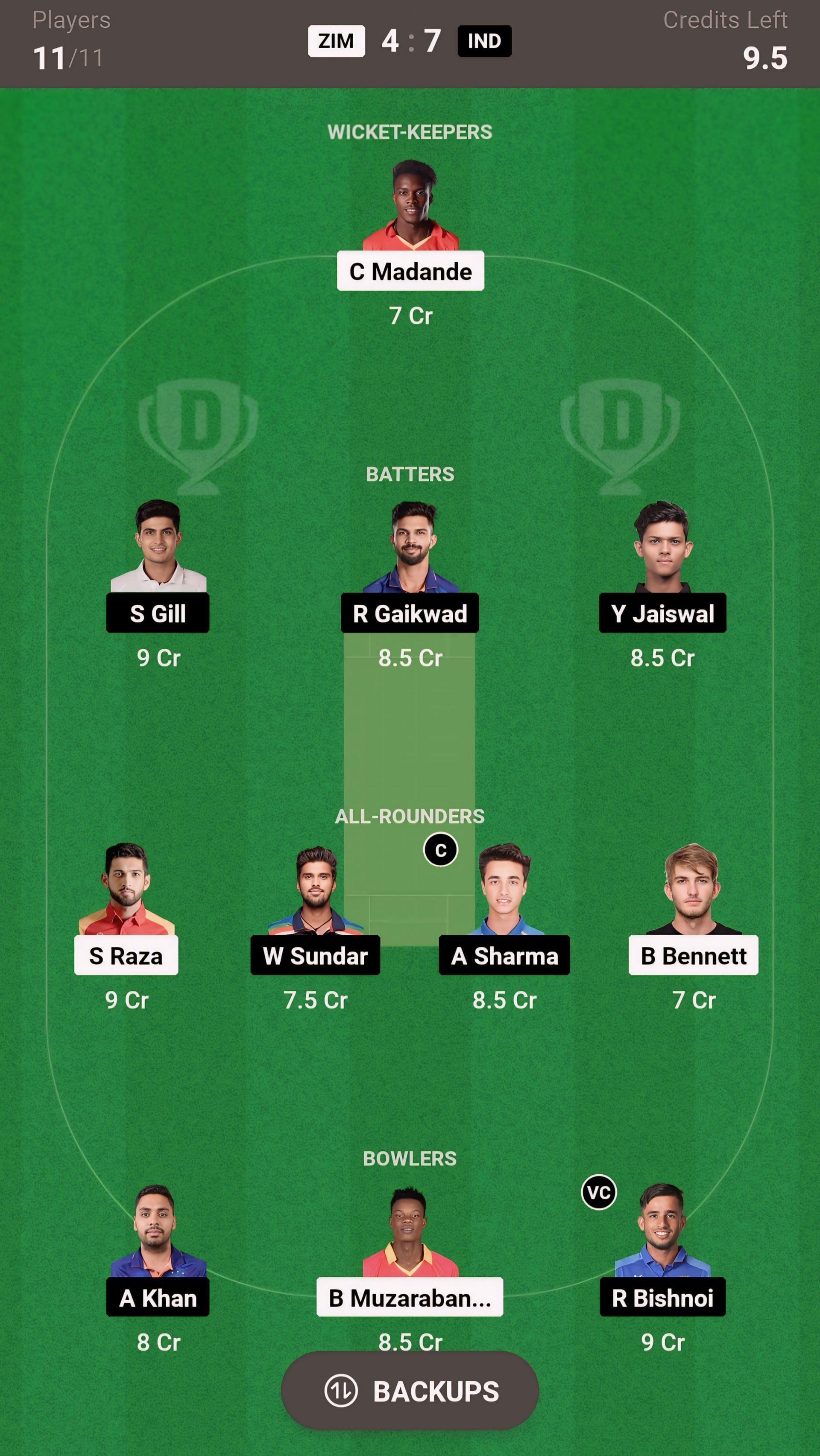 Bowlers: R Bishnoi, B Muzarabani, A Khan