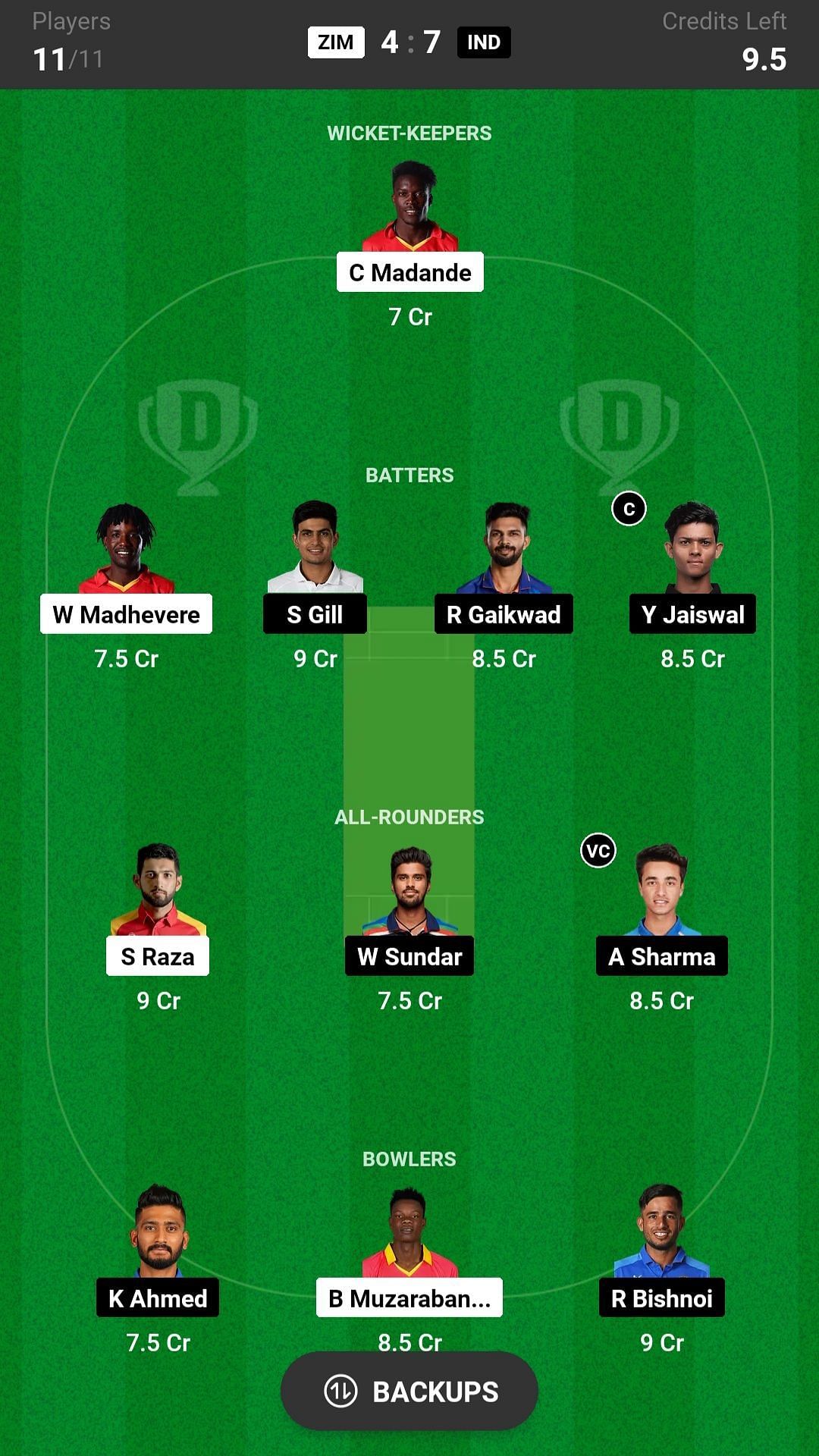 India vs Zimbabwe Dream11 Prediction Today, Grand League