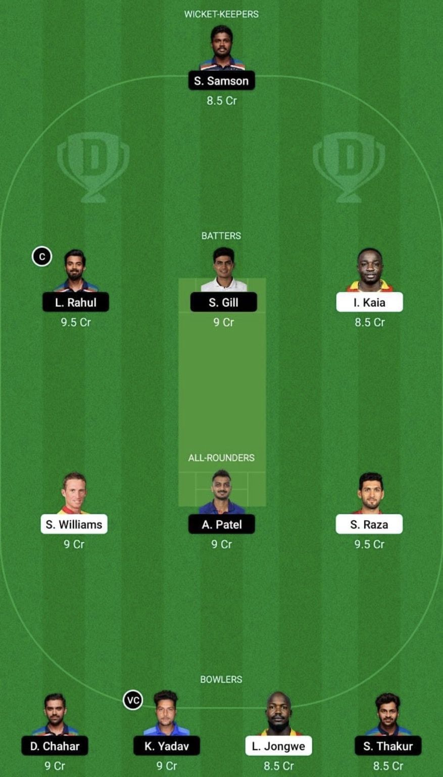 Bowlers: Deepak Chahar, Kuldeep Yadav (vc), Luke Jongwe, Shardul Thakur