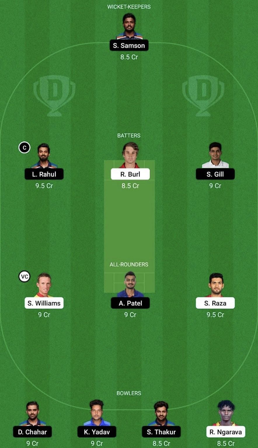 Bowlers: Deepak Chahar, Kuldeep Yadav, Richard Ngarava, Shardul Thakur