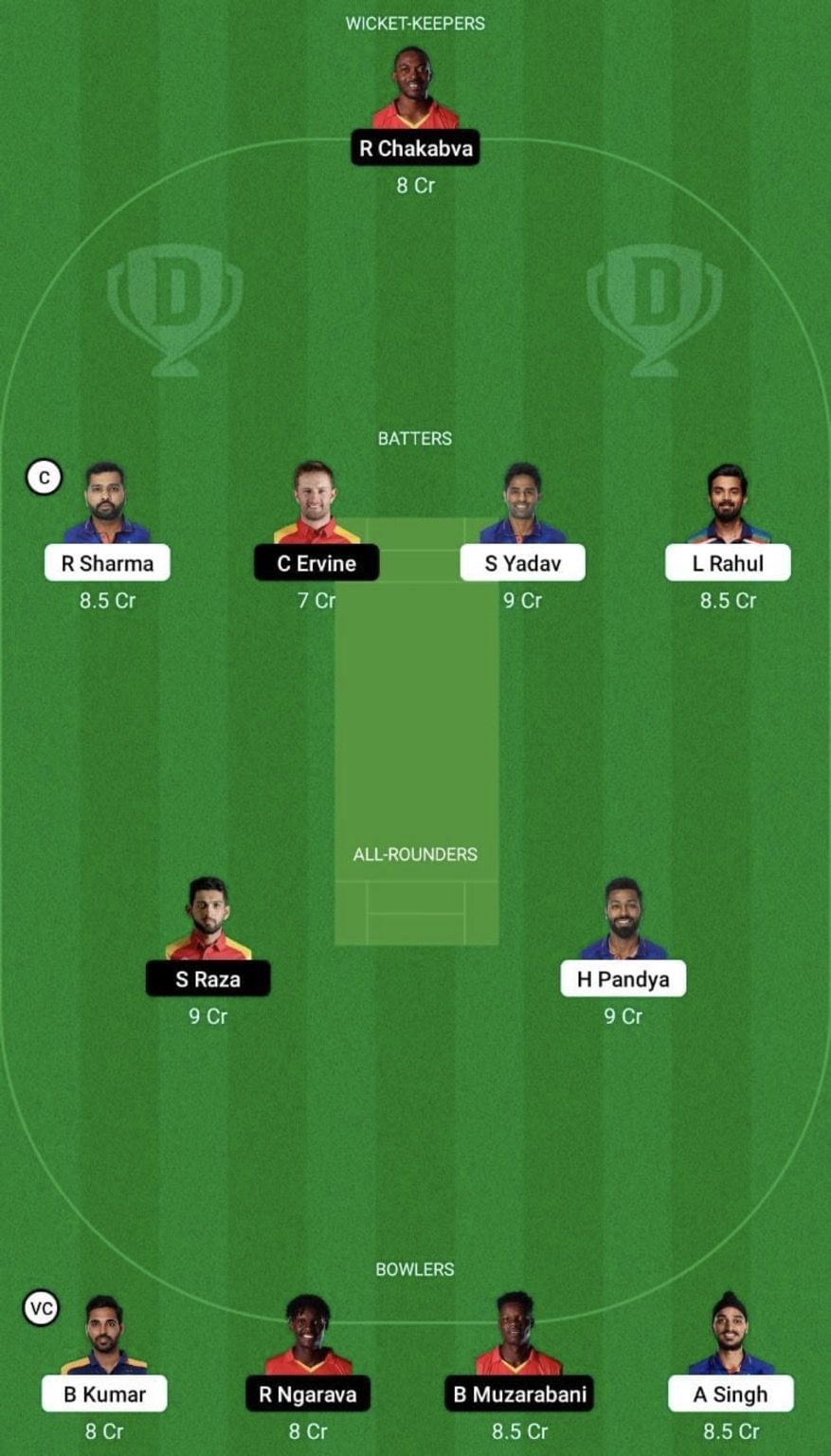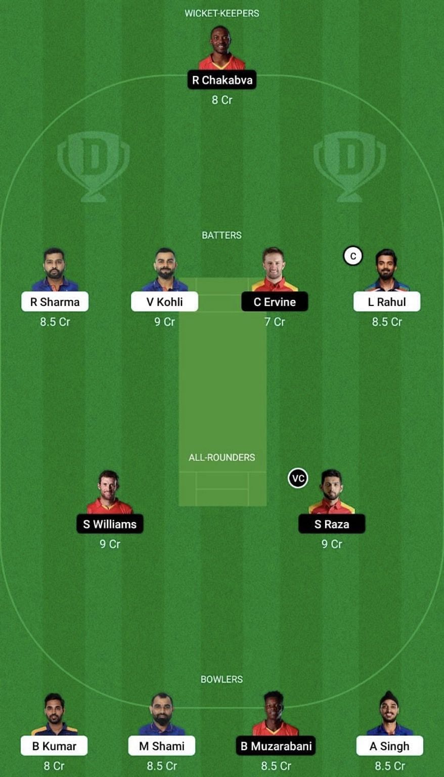IND vs ZIM Dream11 Prediction Team Today, Head To Head League