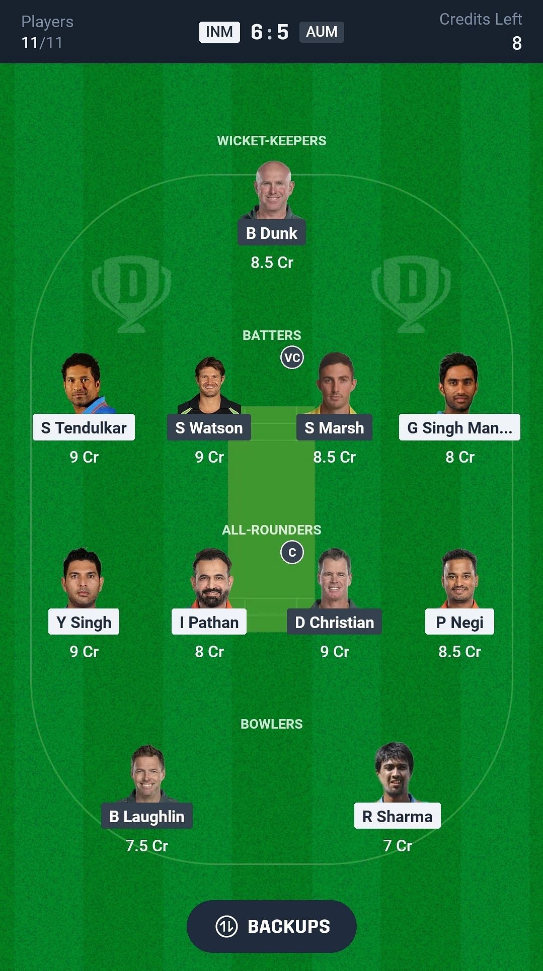 India Masters vs Australia Masters Dream11 Prediction Today, Grand League