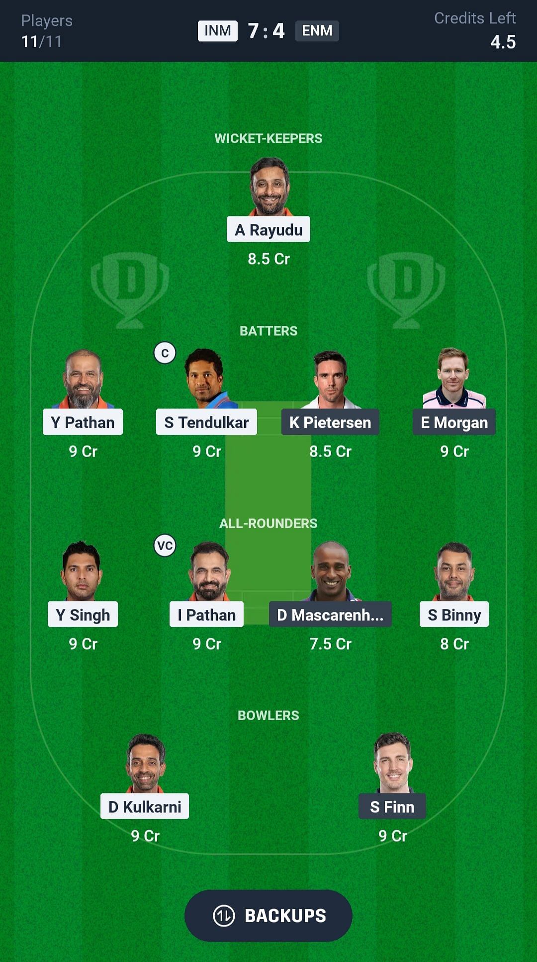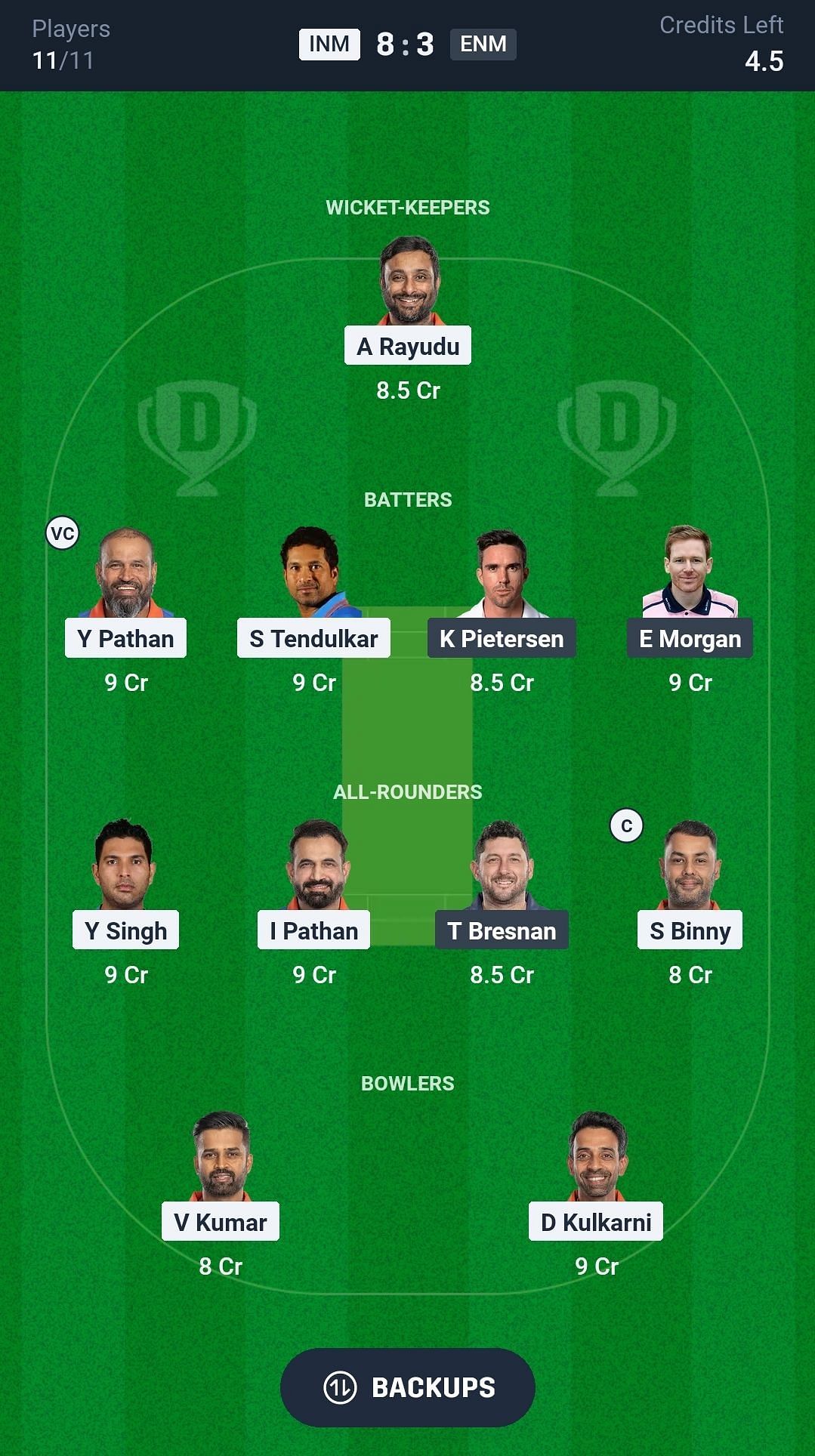 India Masters vs England Masters Dream11 Prediction Today, Grand League