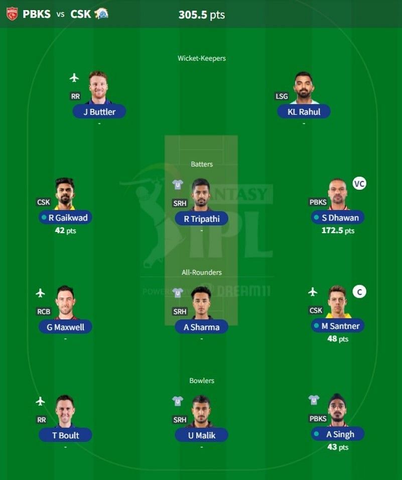 Captain: Mitchell Santner | Vice-captain: Shikhar Dhawan