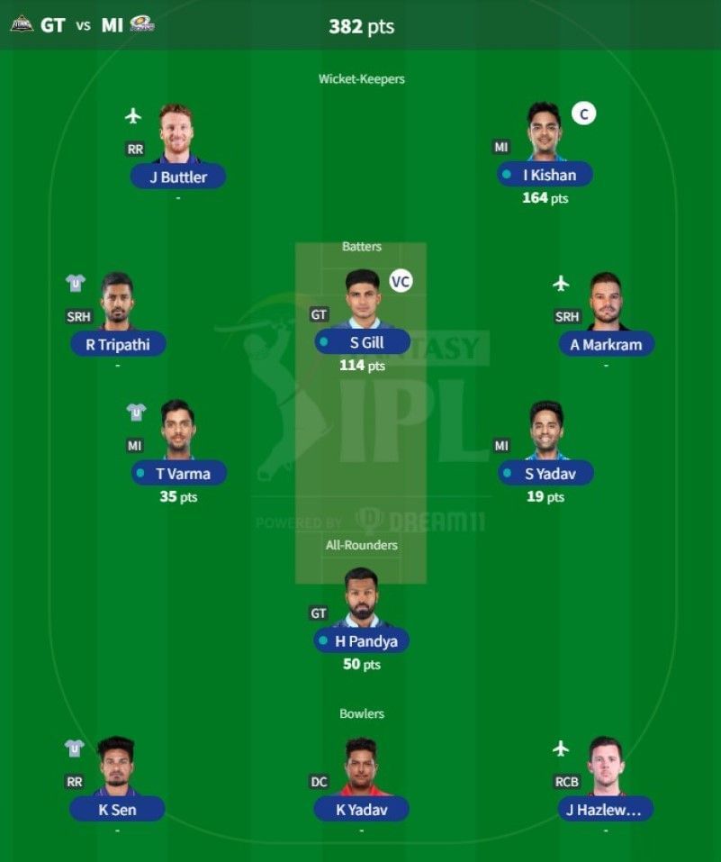 I made an extra transfer in the GT-MI match, bringing in Ishan Kishan for Ruturaj Gaikwad. I also changed my uncapped transfer to bring Kuldeep Sen in.