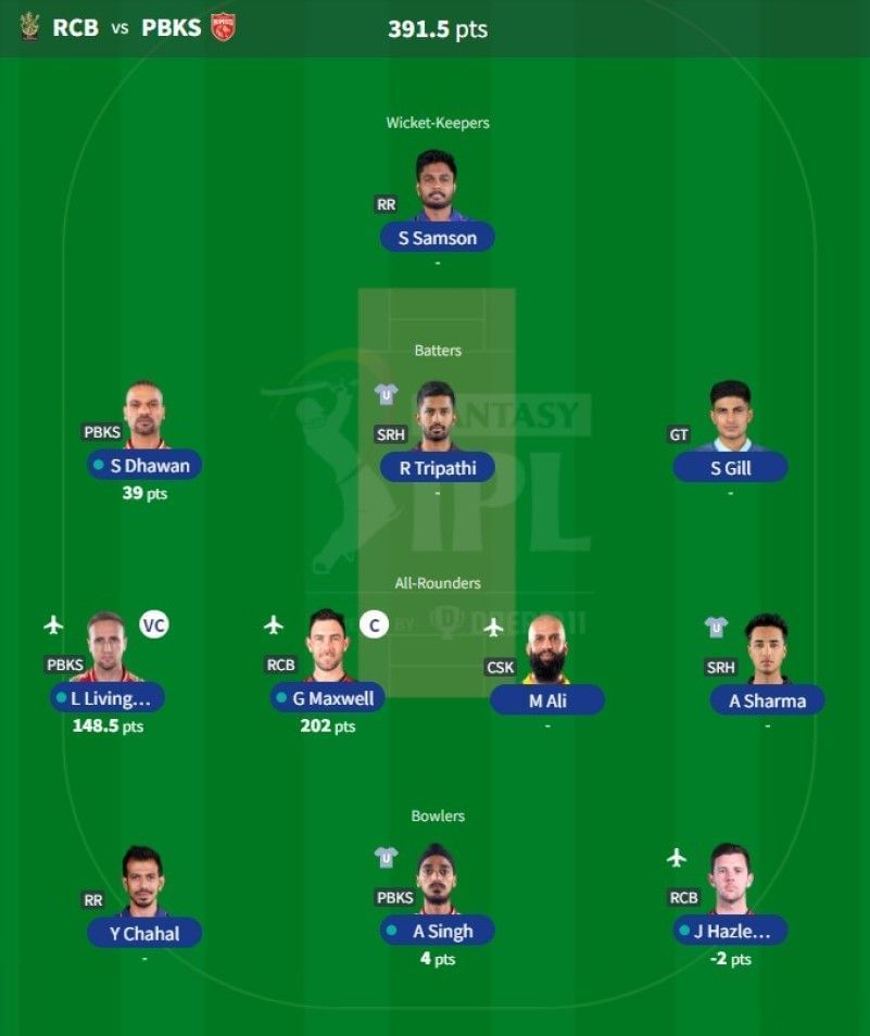 After a couple of games not going my way, it was a welcome return to normalcy after some good hauls from Liam Livingstone and Glenn Maxwell. Not picking the right bowlers from each team hurt me as Harshal Patel continued to impress as Hazlewood had an off day.