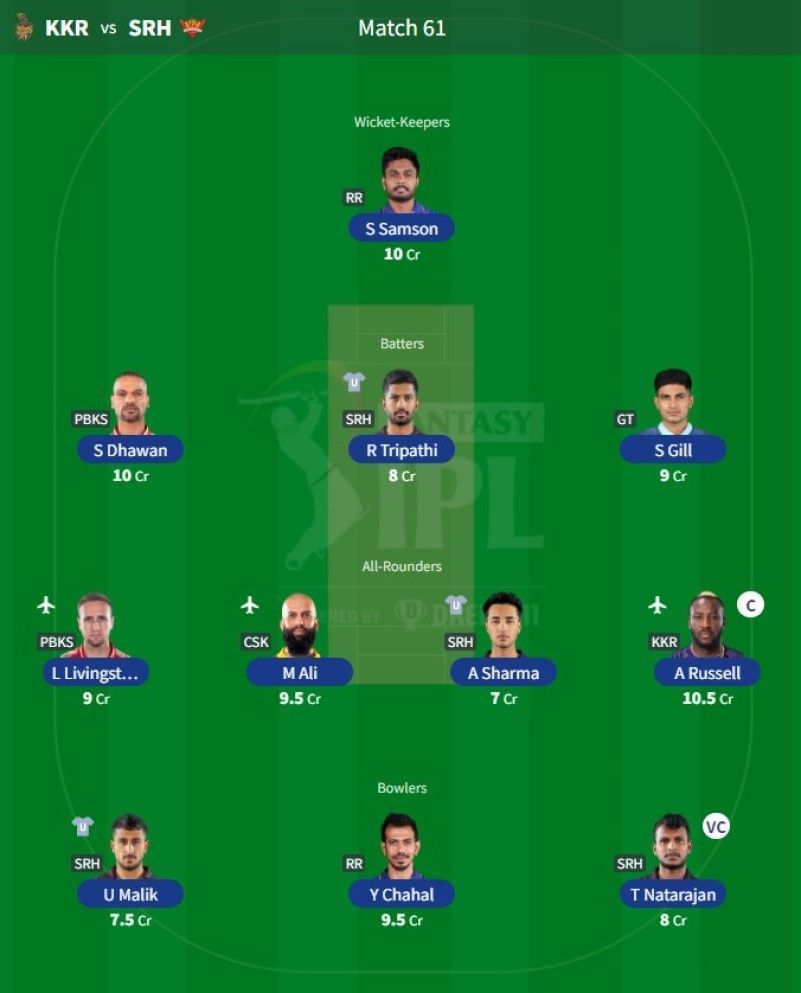 IPL 2022 Fantasy Team for Match 61 - KKR vs SRH