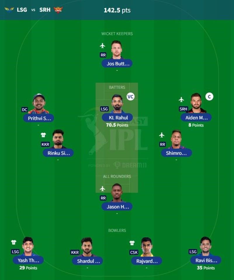 Captain: Aiden Markram. | Vice-captain: KL Rahul.