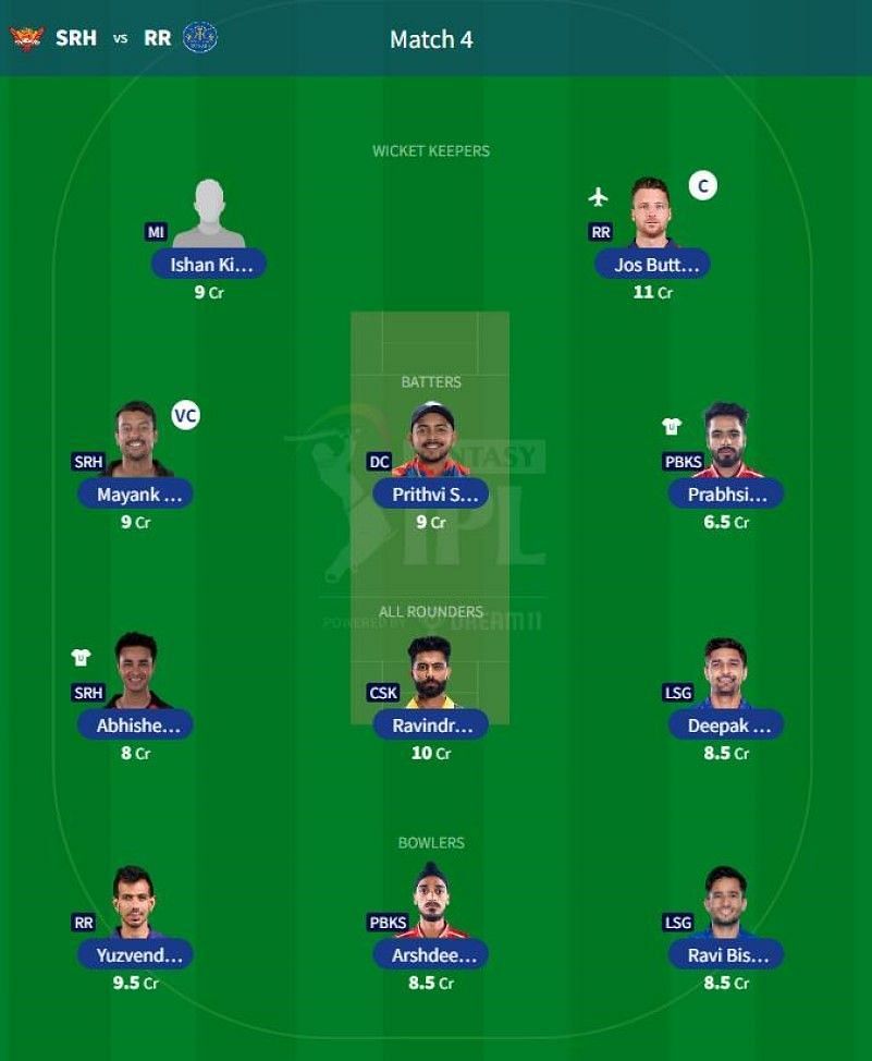 With only four players on the team, deciding on the captain becomes a bit easier. Chahal, Buttler, and Mayank are the players I'm considering for captaincy, and I don't intend to repeat the mistake of excluding Buttler like I did last season. I'll make my final choice post the toss.