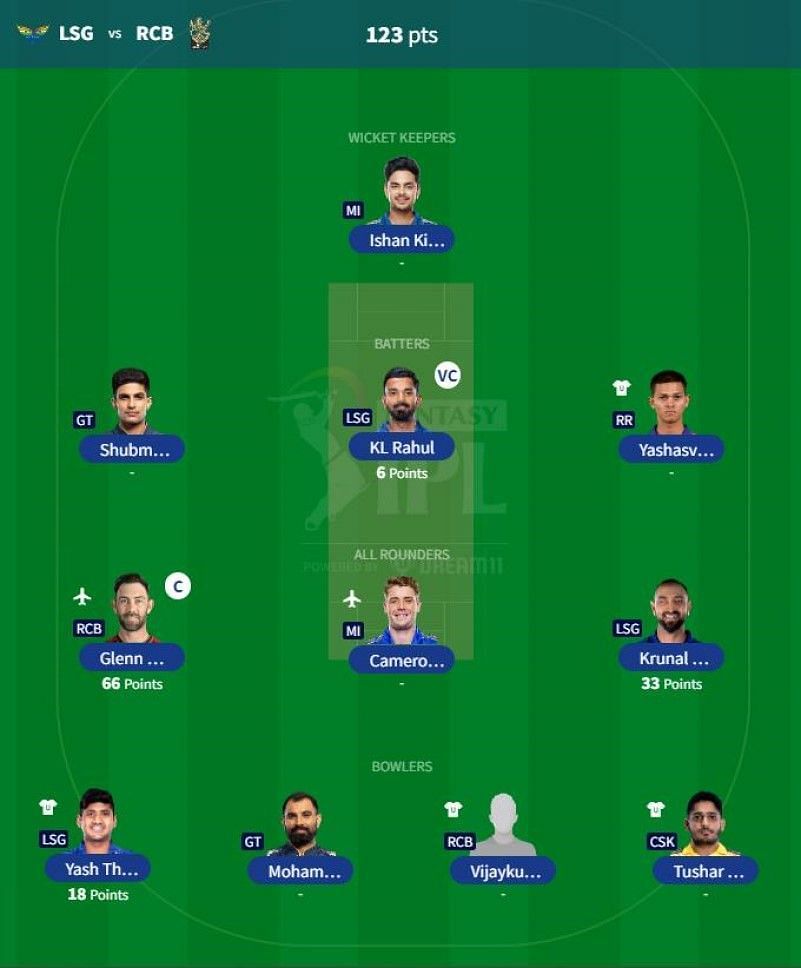 Captain: Glenn Maxwell. | Vice-captain: KL Rahul.