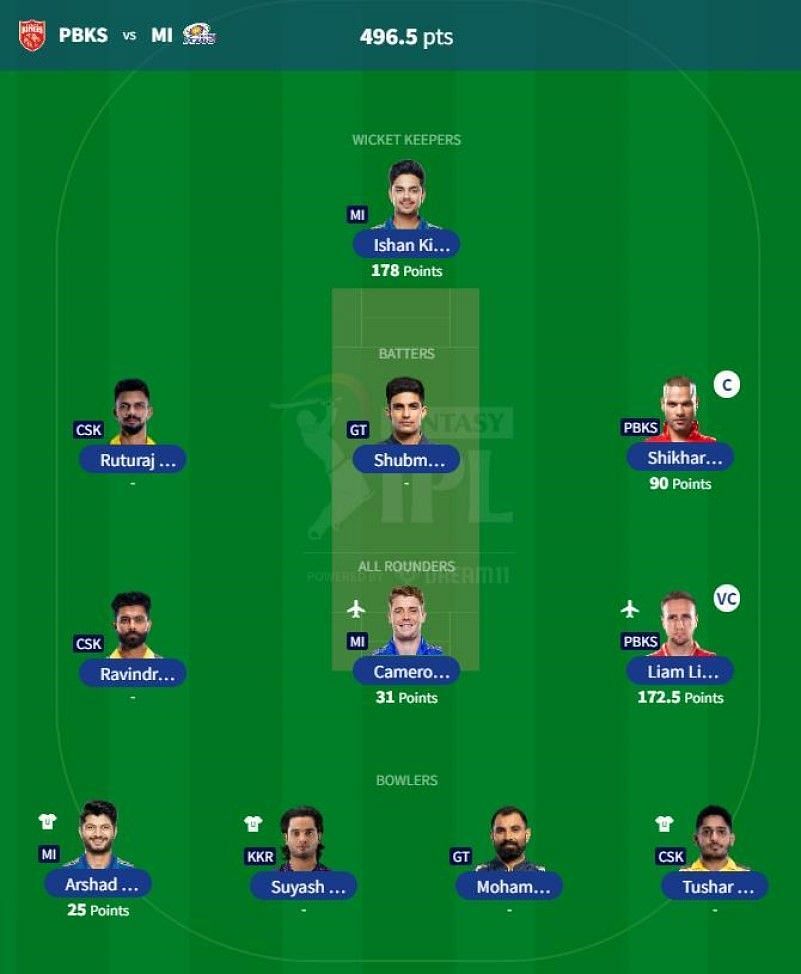 Captain: Shikhar Dhawan. | Vice-captain: Liam Livingstone.