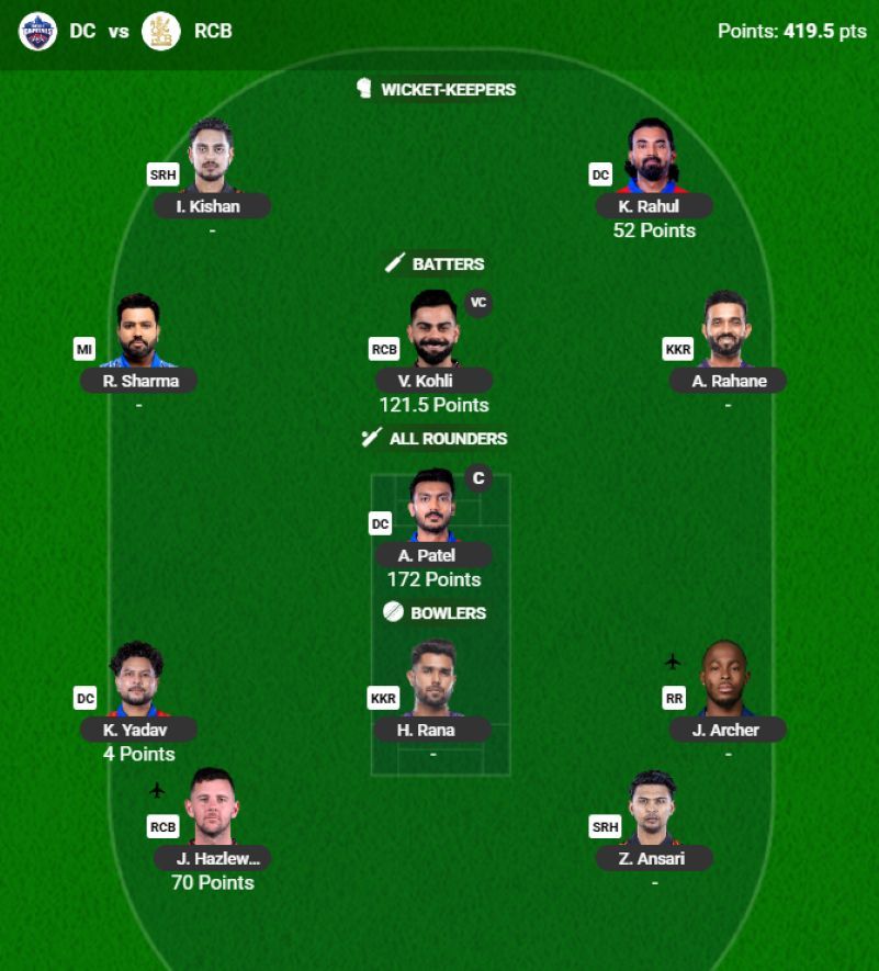 Captain: Axar Patel. | Vice-Captain: Virat Kohli.