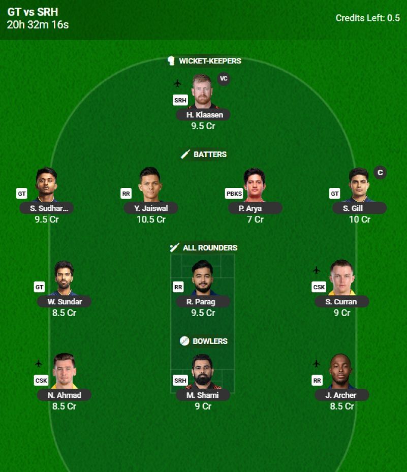 IPL Fantasy 2025 - Fantasy XI for Match 51 - GT vs SRH: Thoughts and Captaincy Tips