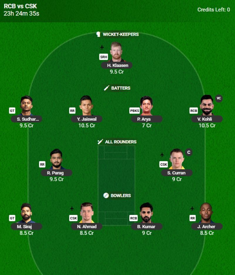IPL Fantasy 2025 - Fantasy XI for Match 52 - RCB vs CSK: Thoughts and Captaincy Tips