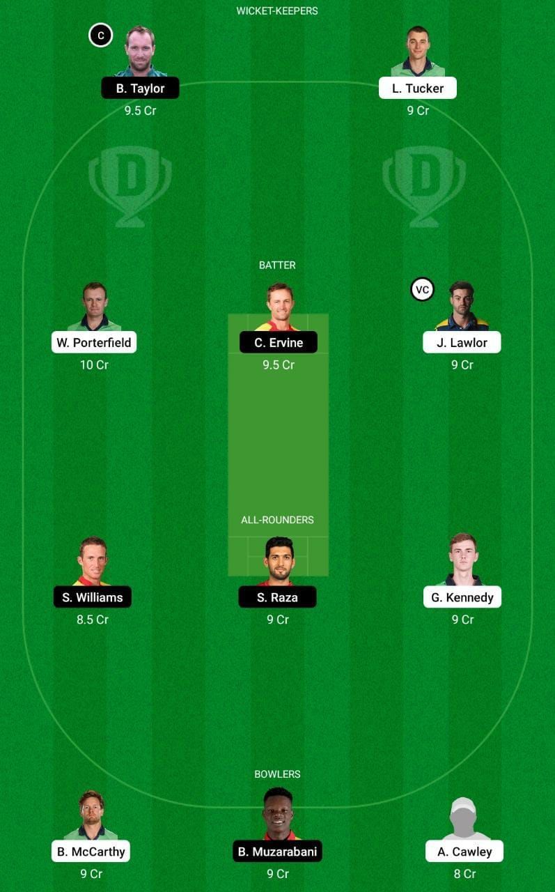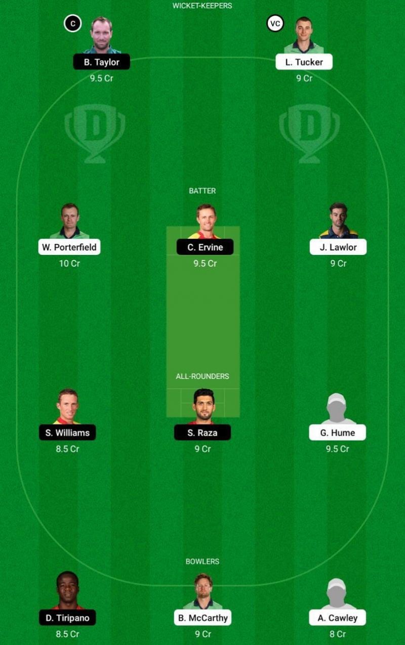 Fantasy Suggestion #2: Brendan Taylor, Lorcan Tucker, Will Porterfield, Craig Ervine, Jeremy Lawlor, Barry McCarthy, Blessing Muzarabani, Aaron Cawley, Sean Williams, Sikandar Raza and Graham Kennedy