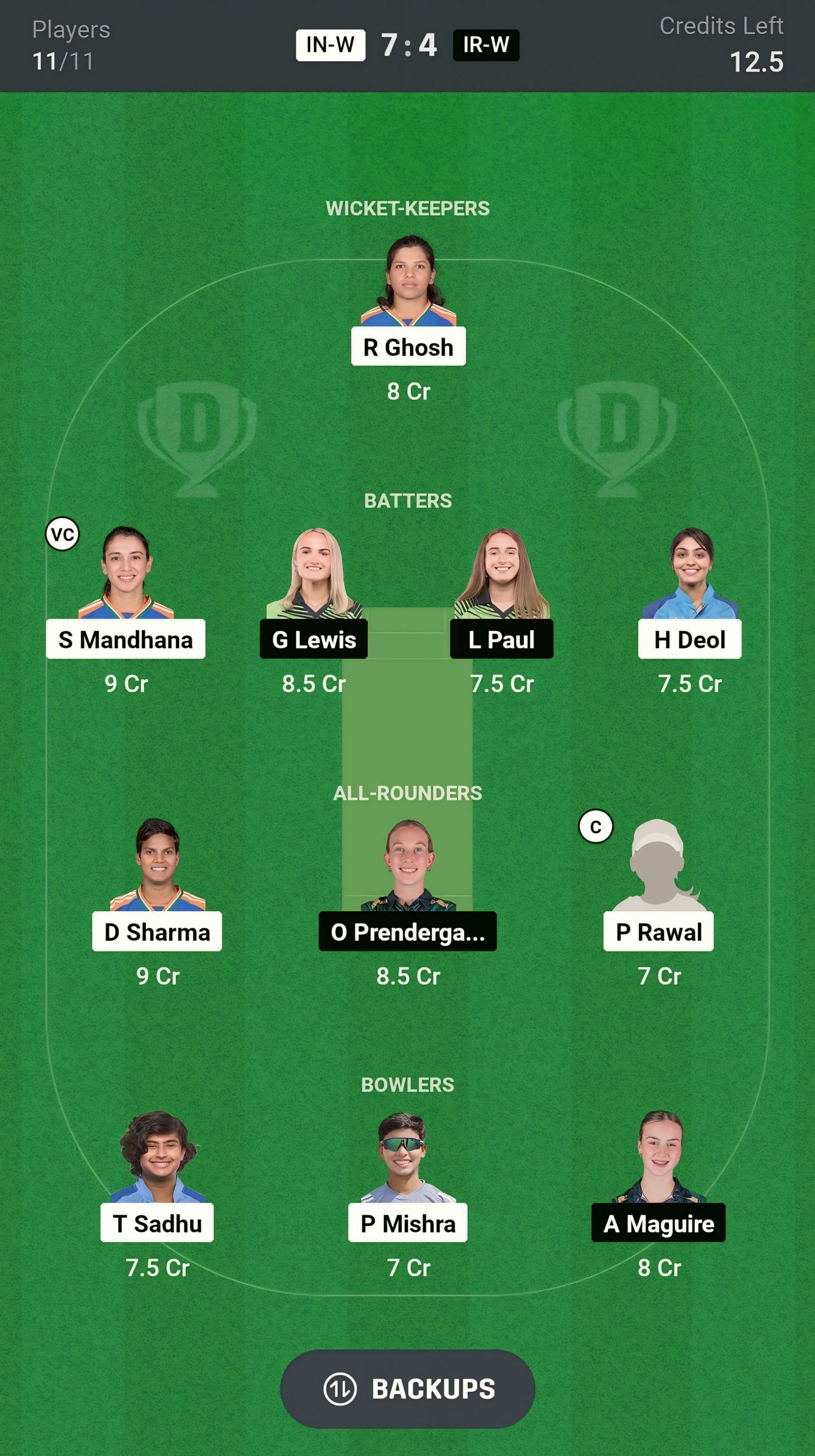 Ireland Women vs India Women Dream11 Prediction Today, Grand League