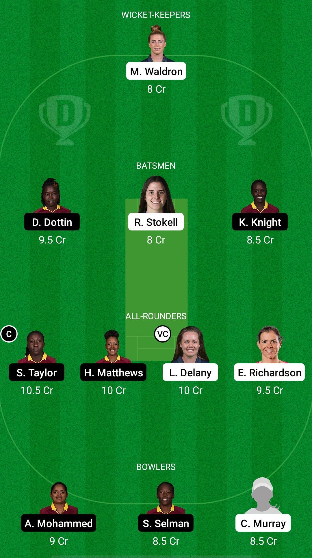 Fantasy Suggestion #2: Mary Waldron, Deandra Dottin, Kyshona Knight, Rebecca Stokell, Stafanie Taylor, Hayley Matthews, Laura Delany, Eimear Richardson, Anisa Mohammed, Shakera Selman, Cara Murray.