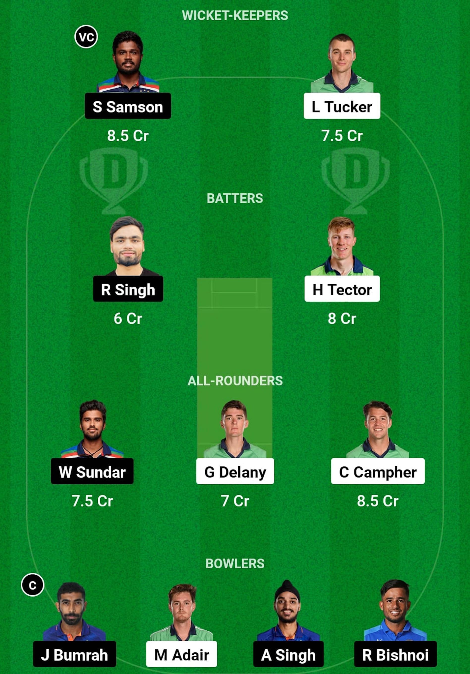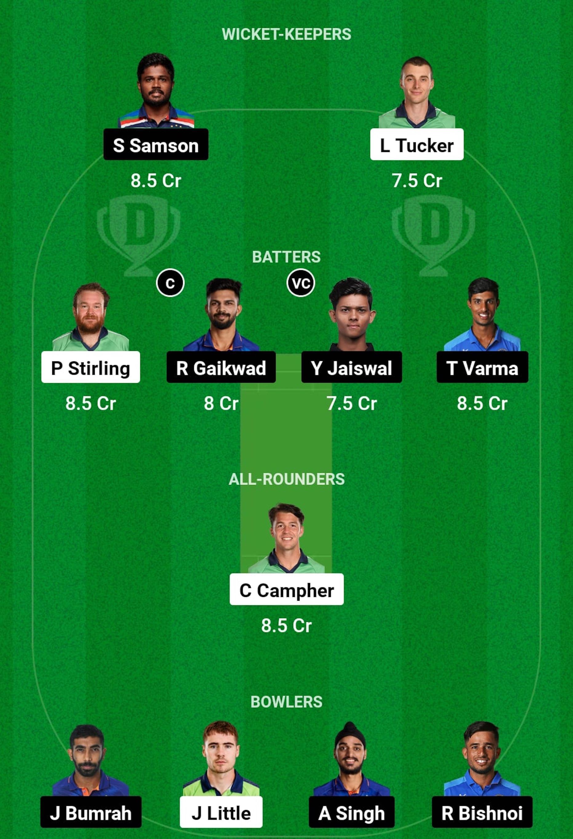 IRE vs IND Dream11 Prediction, 1st T20I, Grand League Team