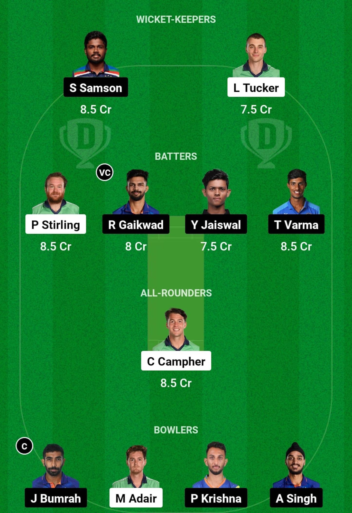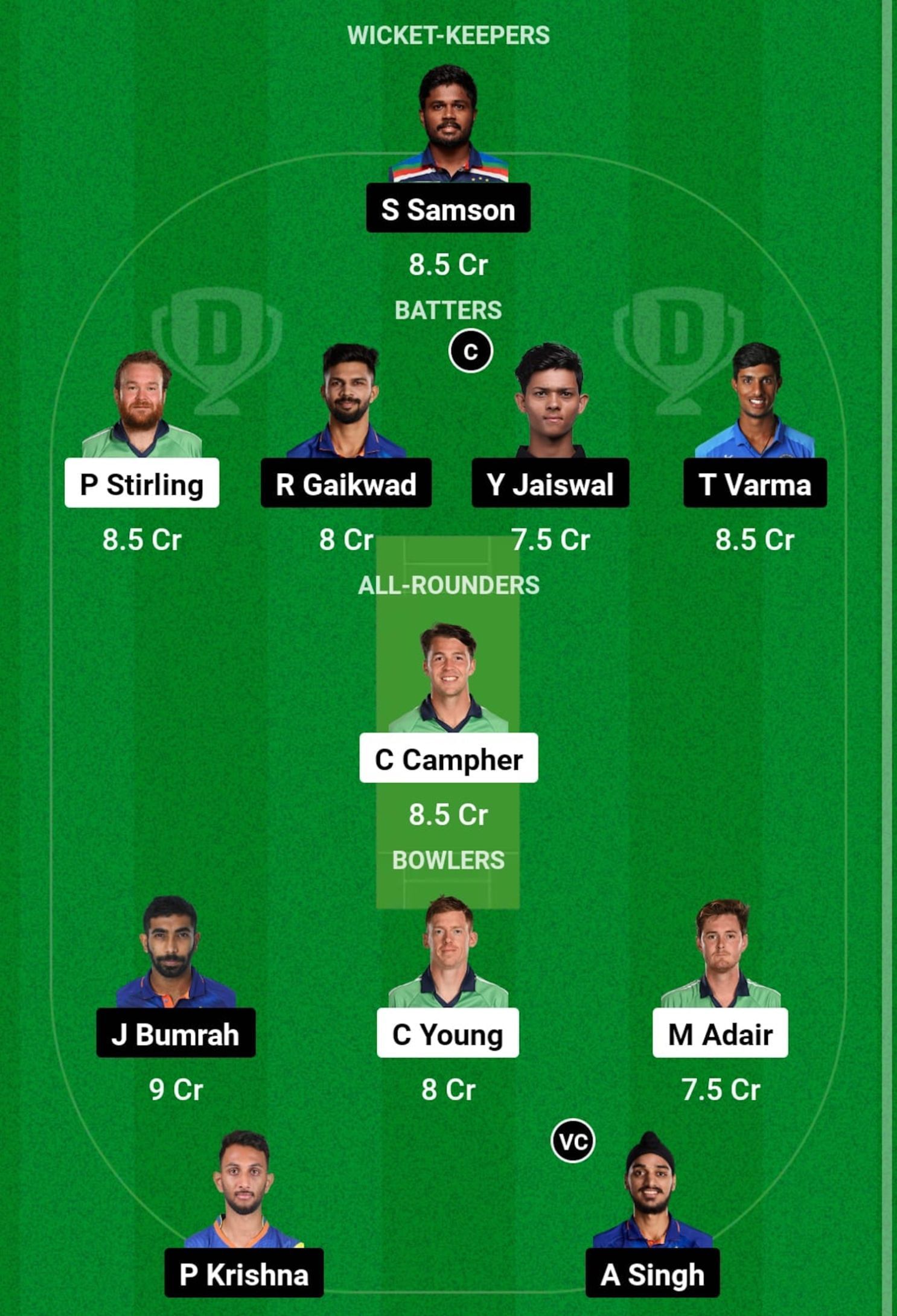 IRE vs IND Dream11 Prediction, 2nd T20I, Grand League Team